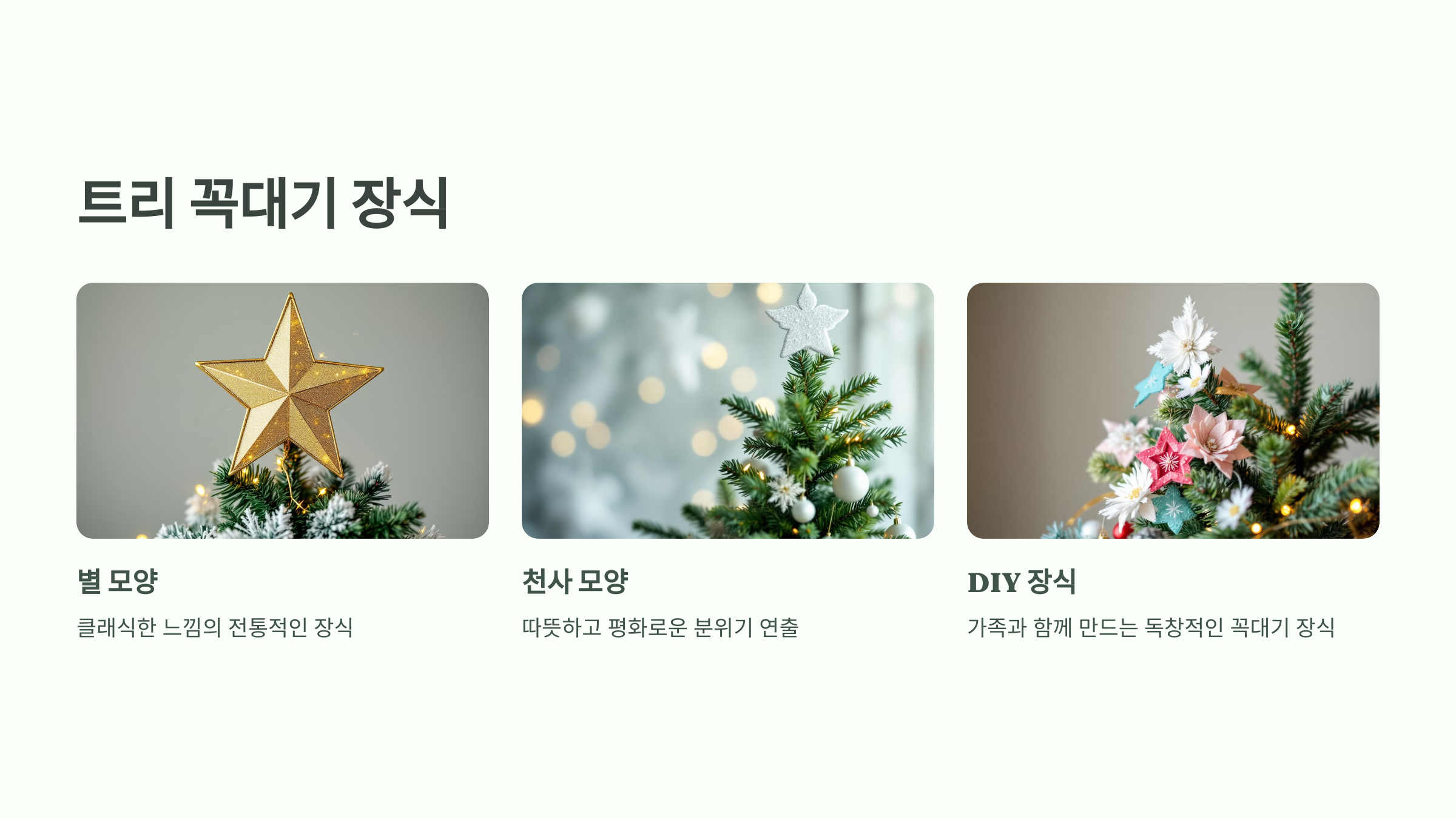 트리 꼭대기 장식은 트리의 마무리를 장식하는 중요한 요소입니다.