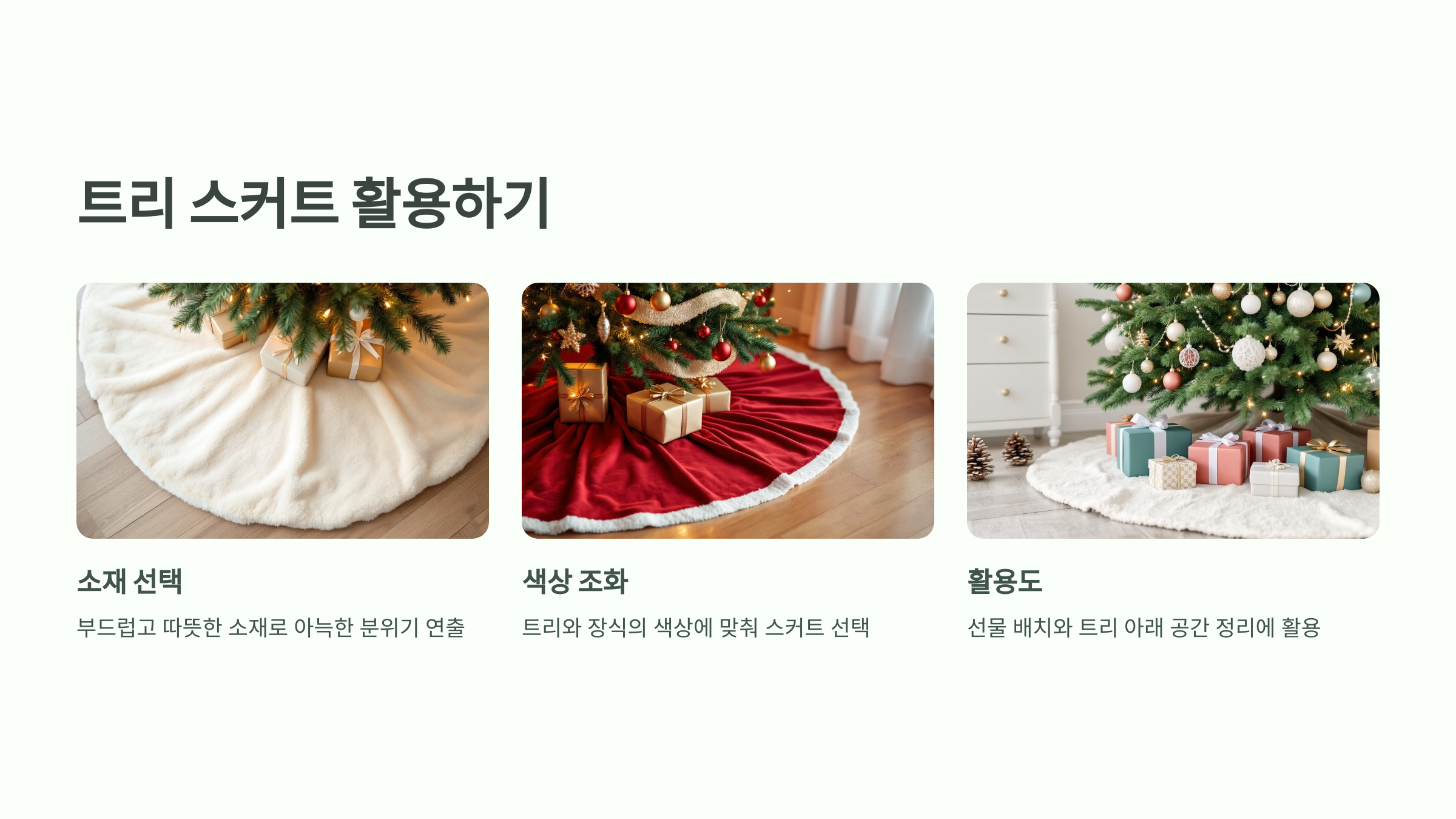 스커트는 트리와 장식의 색상에 맞춰 조화를 이루도록 선택하세요.