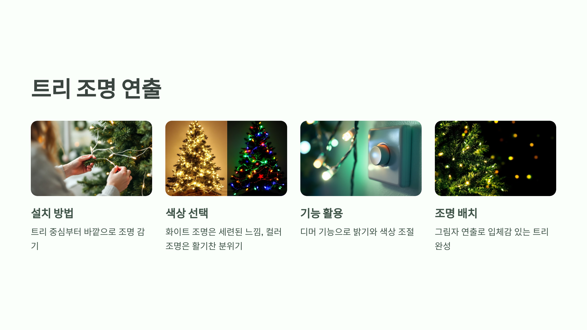 트리 조명은 크리스마스 분위기를 결정짓는 중요한 요소입니다.
