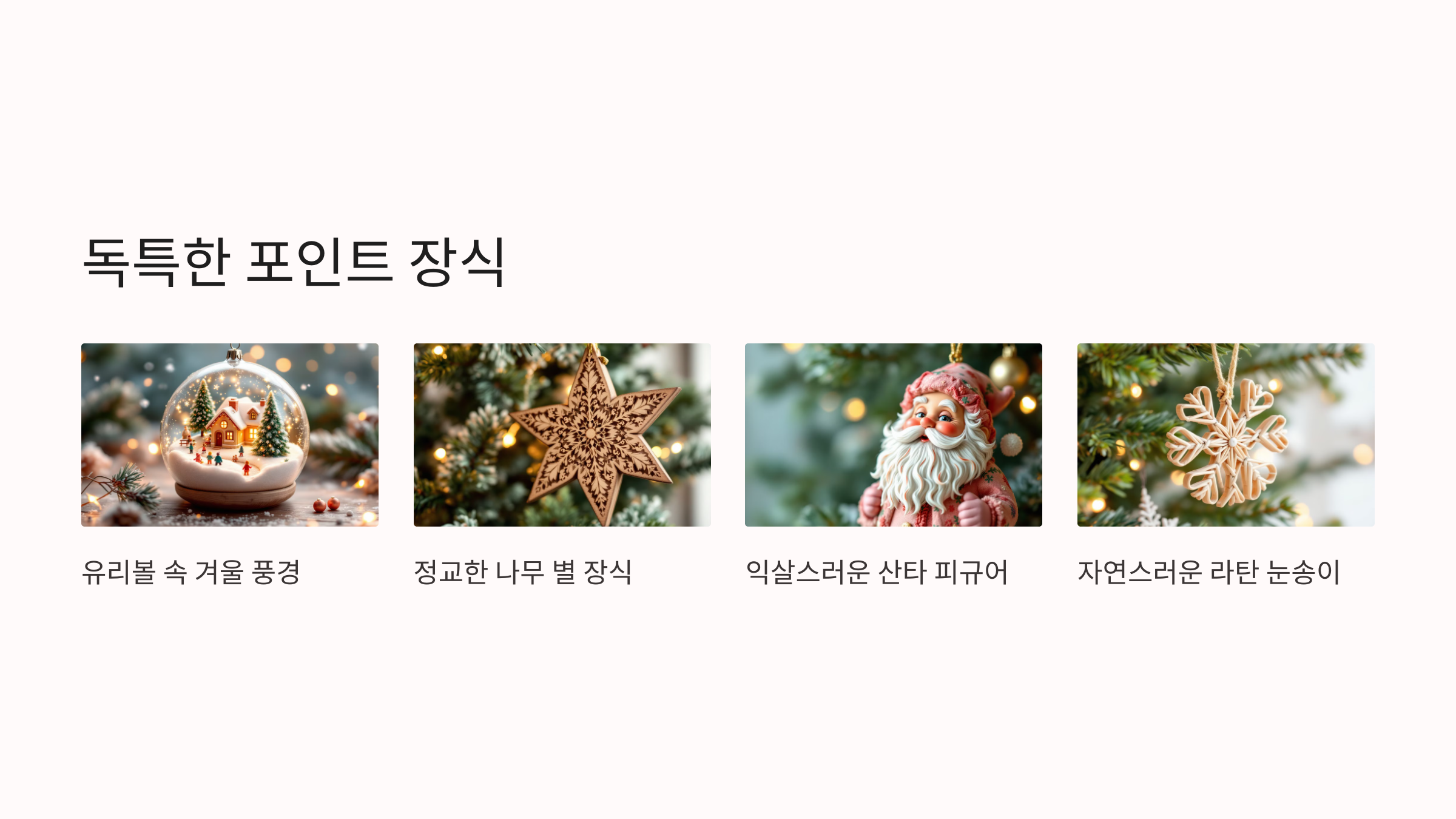 특별한 소재나 모양의 장식품으로 트리를 돋보이게 만드세요.