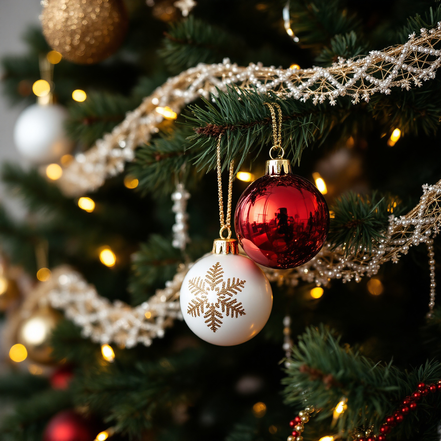골드, 실버, 레드 등의 색상으로 트리의 컬러 테마를 강조해보세요.
