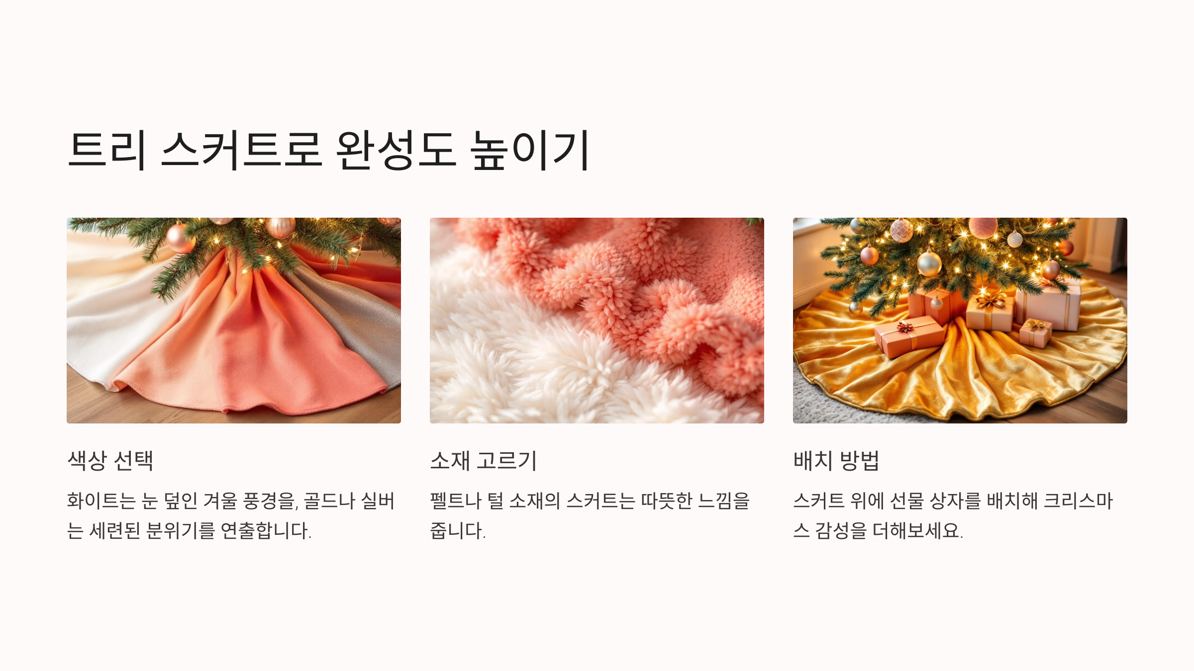 트리와 장식의 색상에 맞춰 스커트를 선택하세요.
