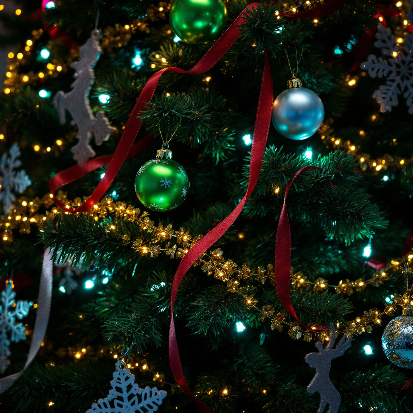 반짝이는 장식은 조명과 어우러져 트리를 더 빛나게 만듭니다.