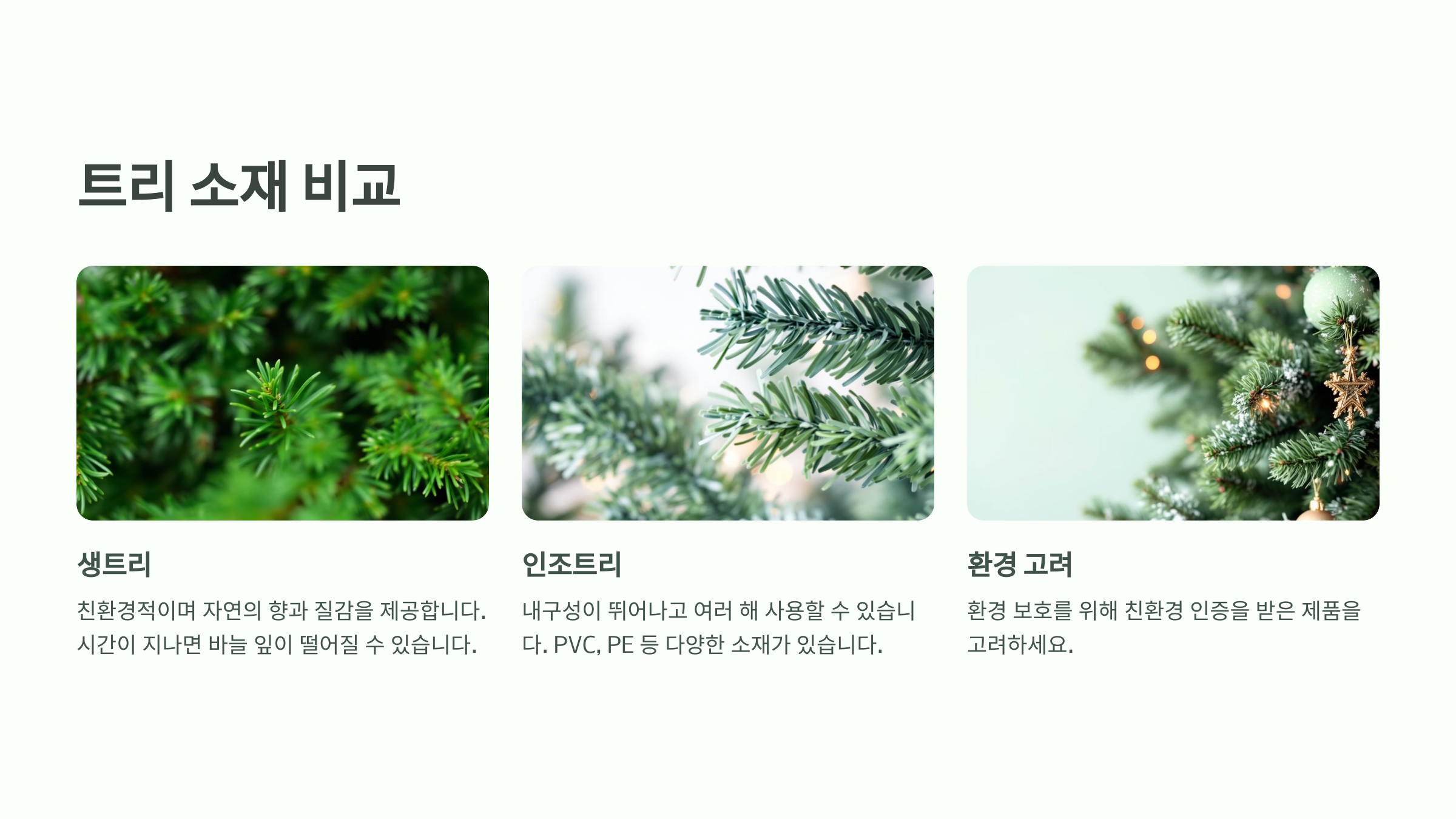 | 크리스마스 트리 소재 비교, 생트리 vs 인조트리 (0) | 2024.12.11 |