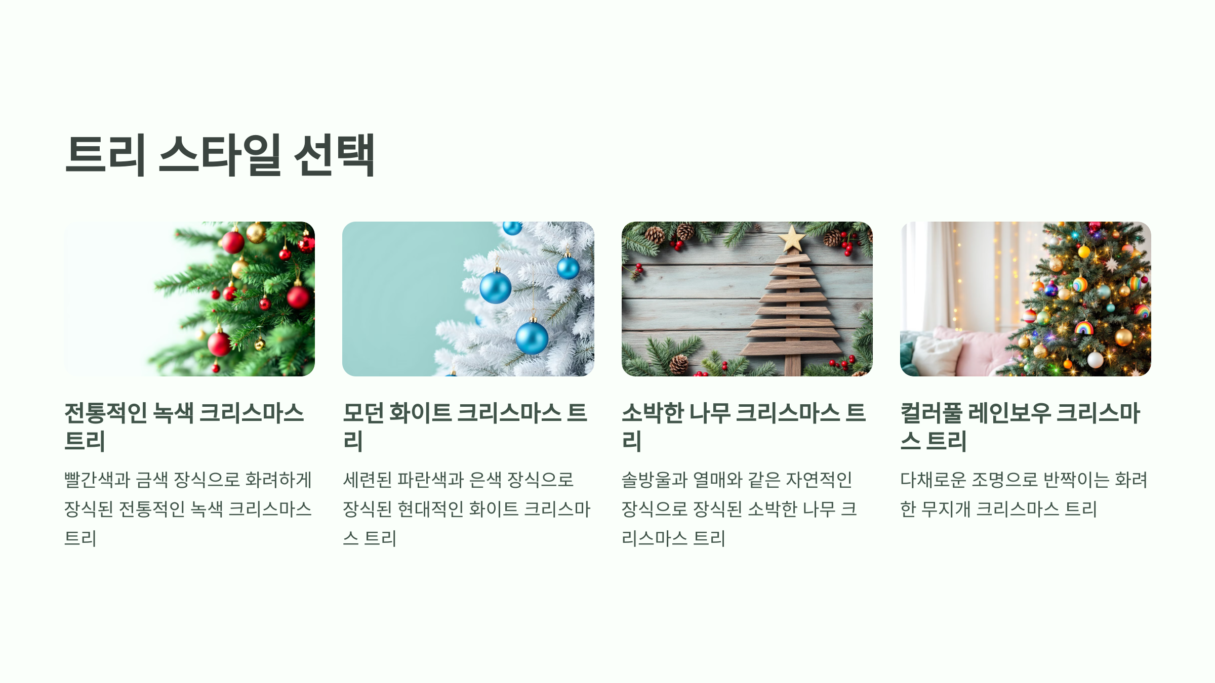 크리스마스 분위기와 집 안 스타일에 맞는 트리를 선택하세요.