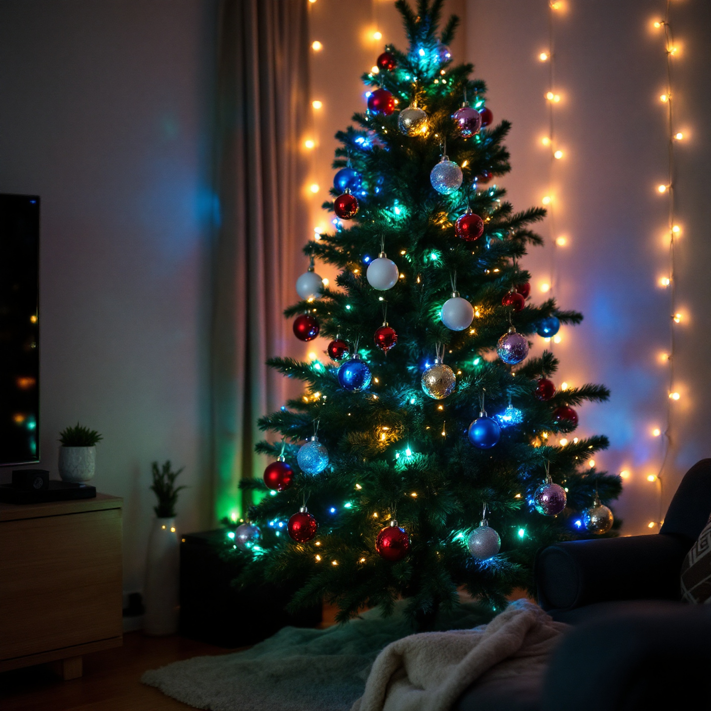 리모컨으로 조명을 조절할 수 있는 스마트 트리를 고려해보세요.