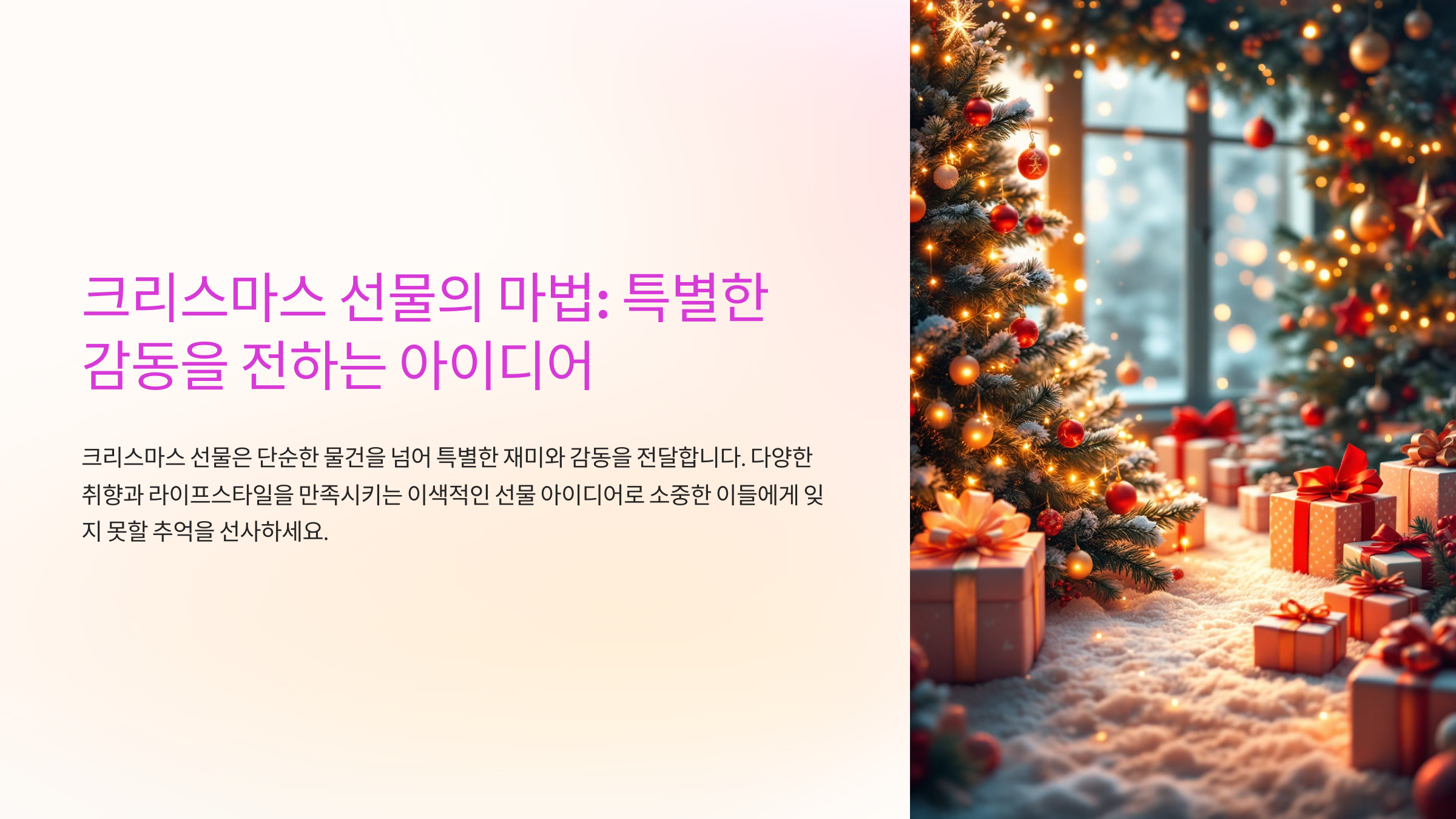 | 취미별 완벽 선물 추천! 실패 없는 크리스마스 쇼핑 가이드 (0) | 2024.12.11 |
