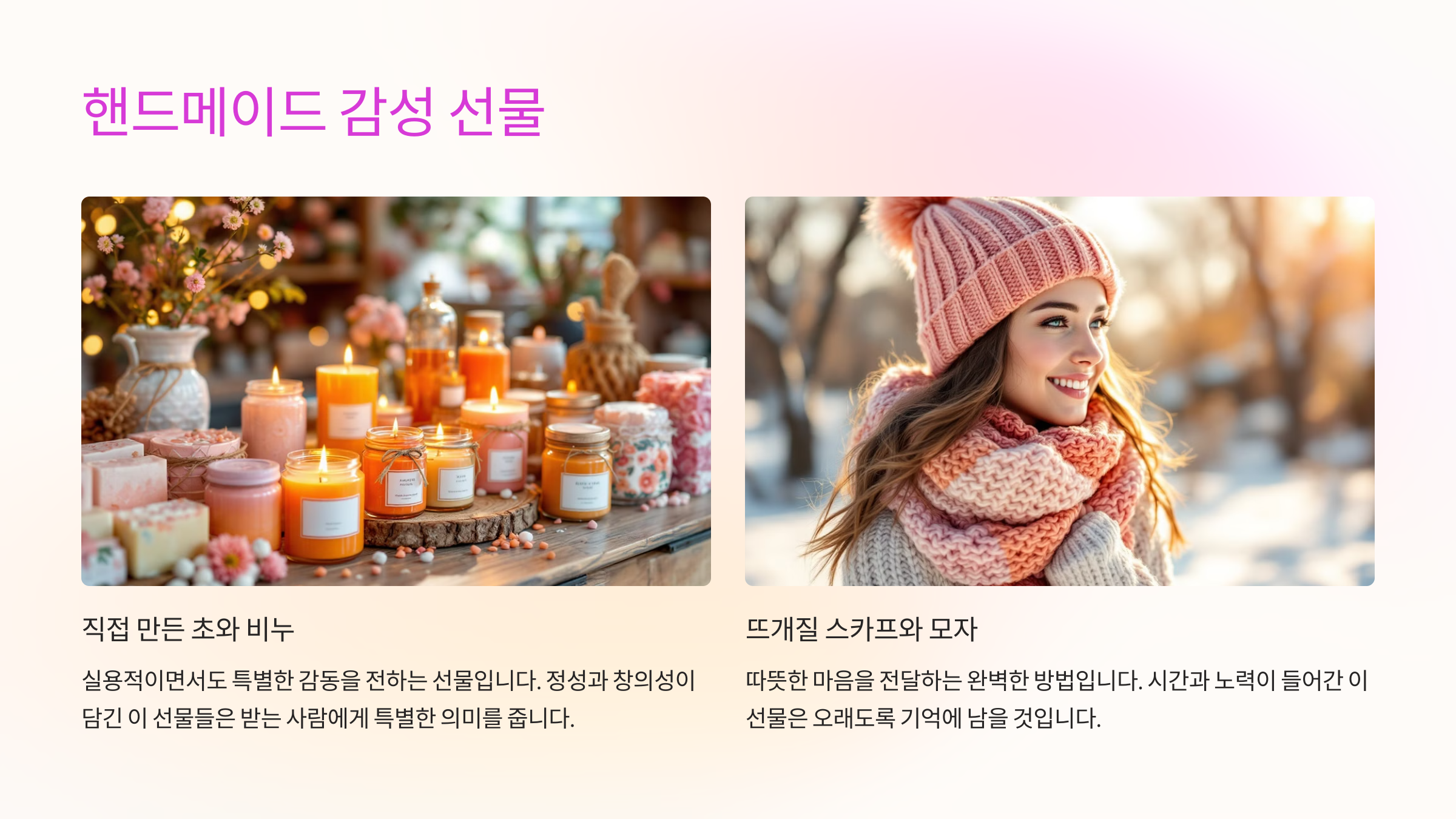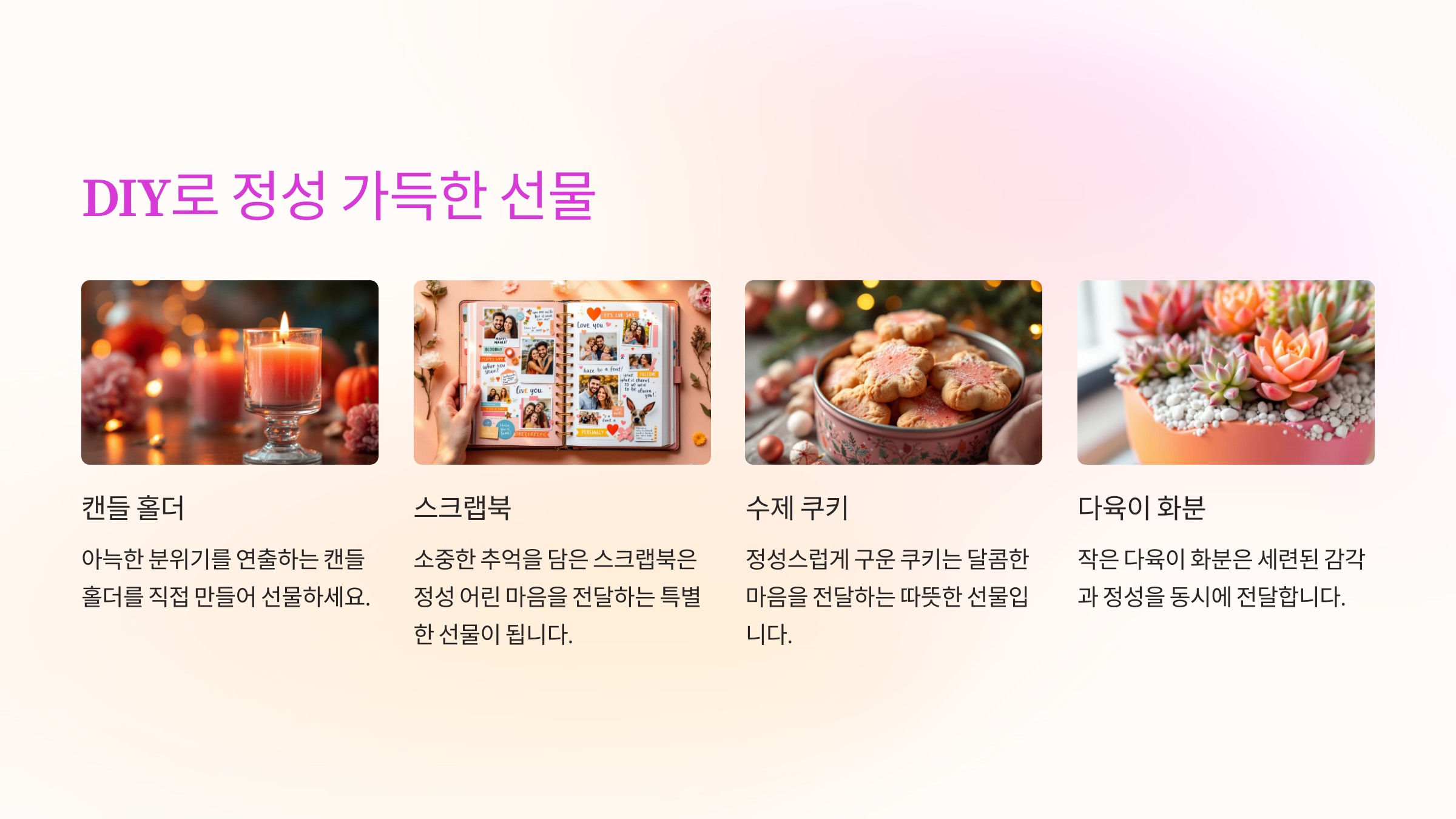 정성이 담긴 핸드메이드 선물은 특별한 감동을 전합니다.