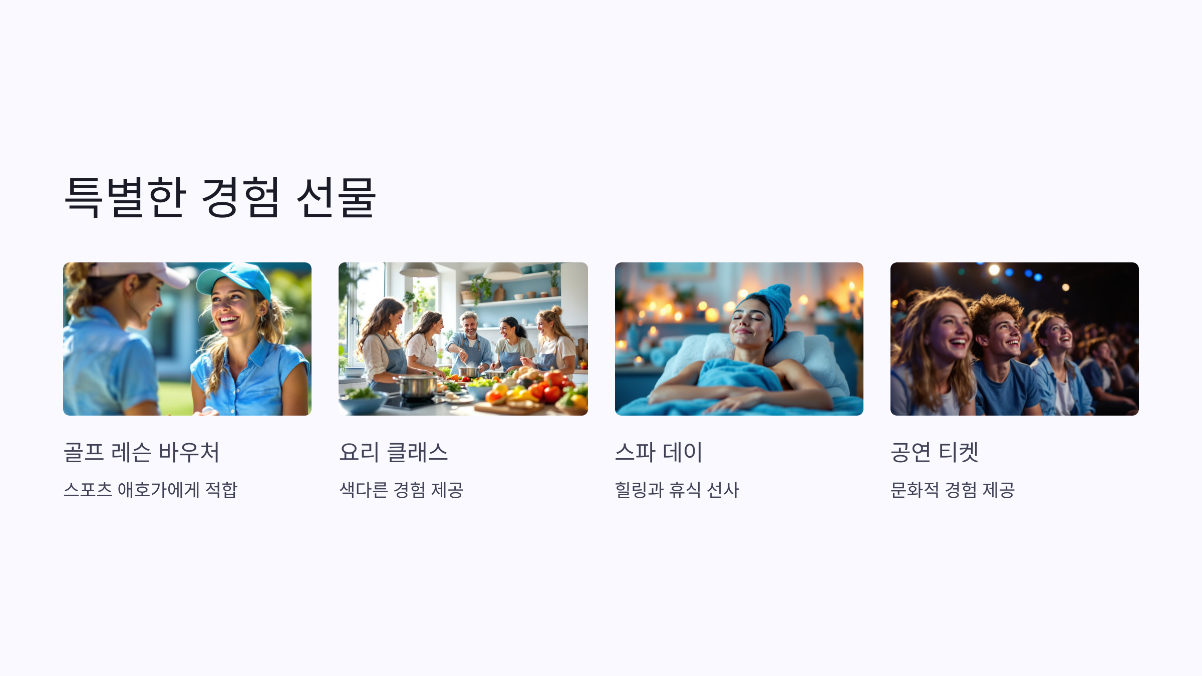 특별한 순간을 선사할 수 있는 경험 중심의 선물입니다.