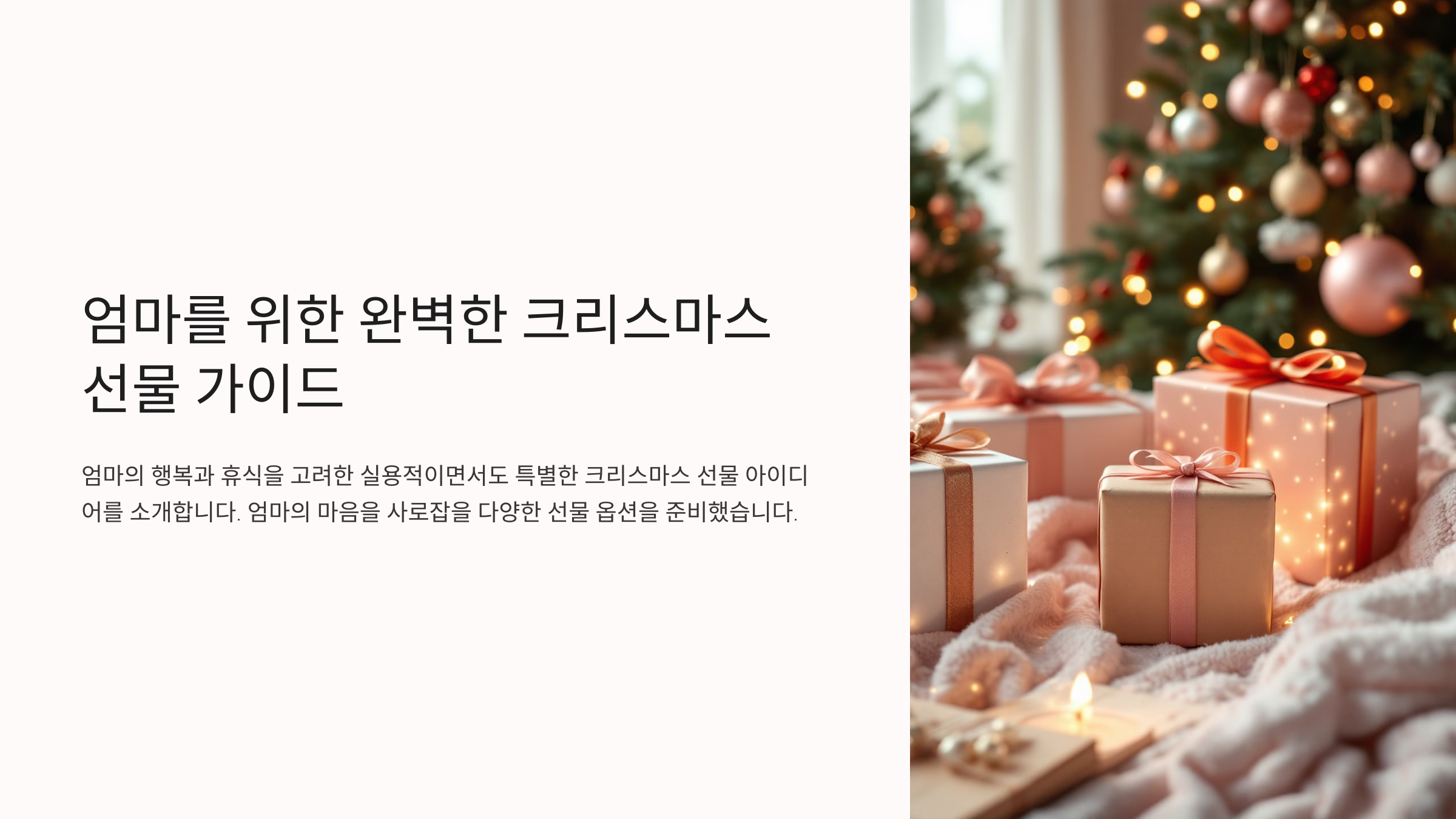 엄마를 위한 크리스마스 선물은 실용적이면서도 그녀의 행복과 휴식을 고려한 것이어야 합니다. 아래 추천 목록은 엄마가 꼭 마음에 들어할 만한 아이템과 아이디어로 구성되었습니다. 선물 고르기에 참고하세요!