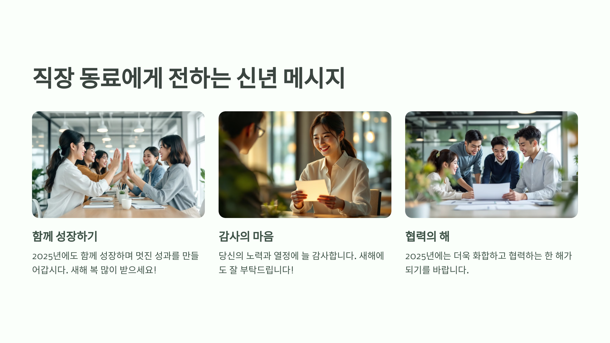 “2025년에도 함께 성장하며 멋진 성과를 만들어갑시다. 새해 복 많이 받으세요!”