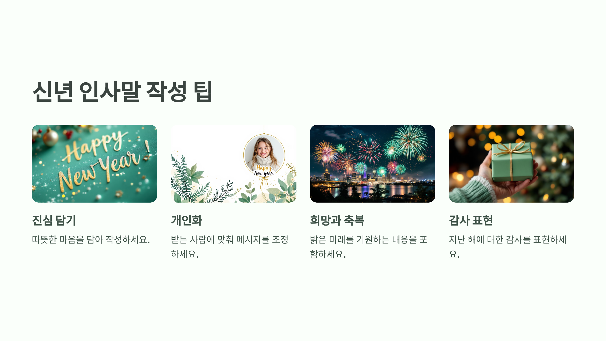 “새해는 새 출발의 기회입니다. 당신의 도전을 진심으로 응원합니다.”