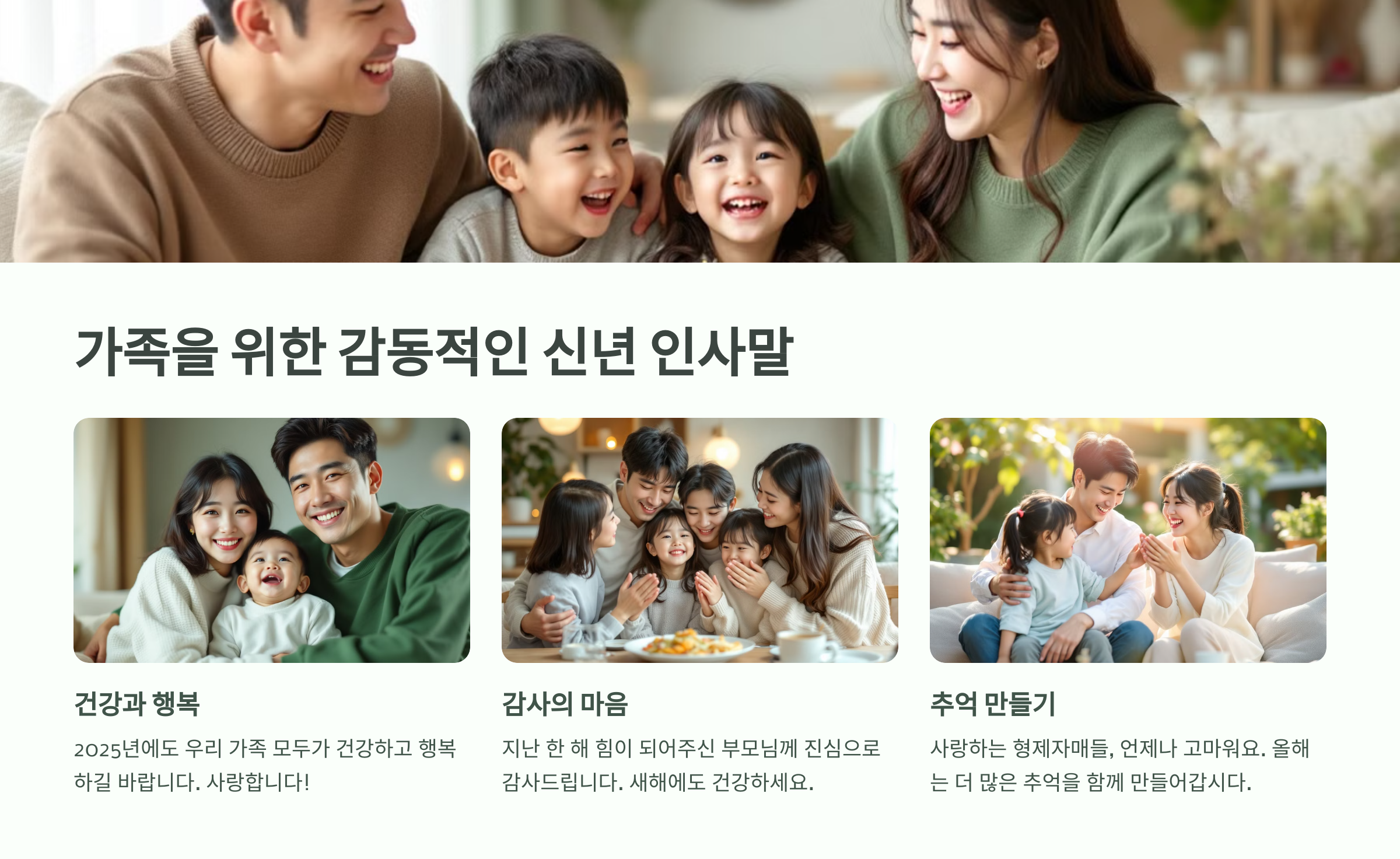 “가족의 웃음소리가 가득한 한 해를 기대하며, 새해 복 많이 받으세요!”