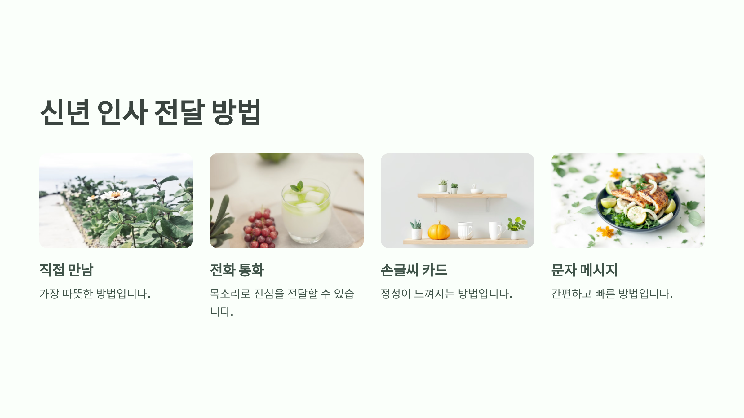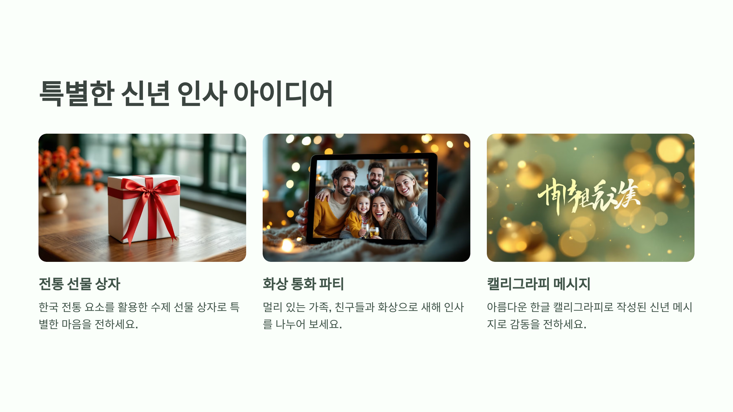 “새해 복 많이 받으시고, 멋진 한 해 되시길 진심으로 기원합니다.”
