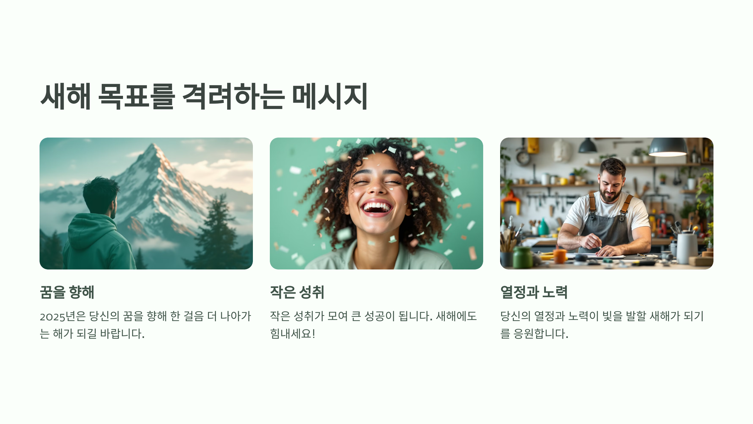 “2025년에는 목표를 하나씩 이루며 자신감을 더해가세요. 당신을 응원합니다!”