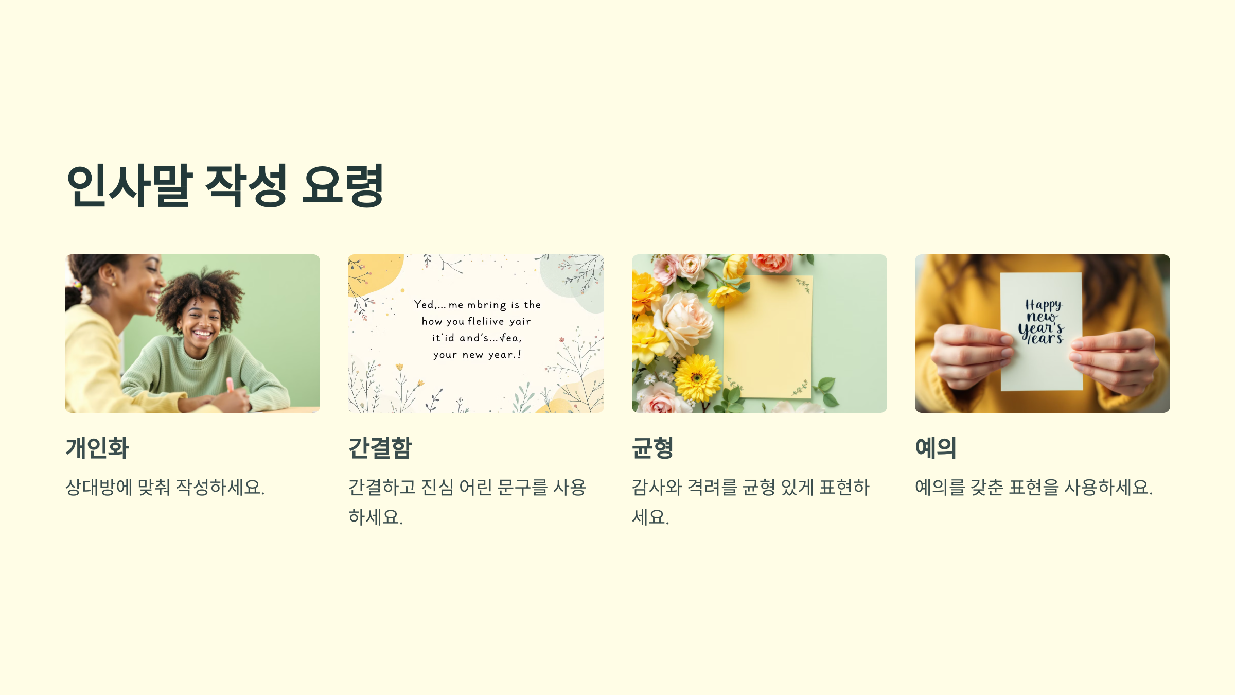 “새해에는 건강하시고 모든 일이 순조롭게 이루어지길 진심으로 기원합니다.”
