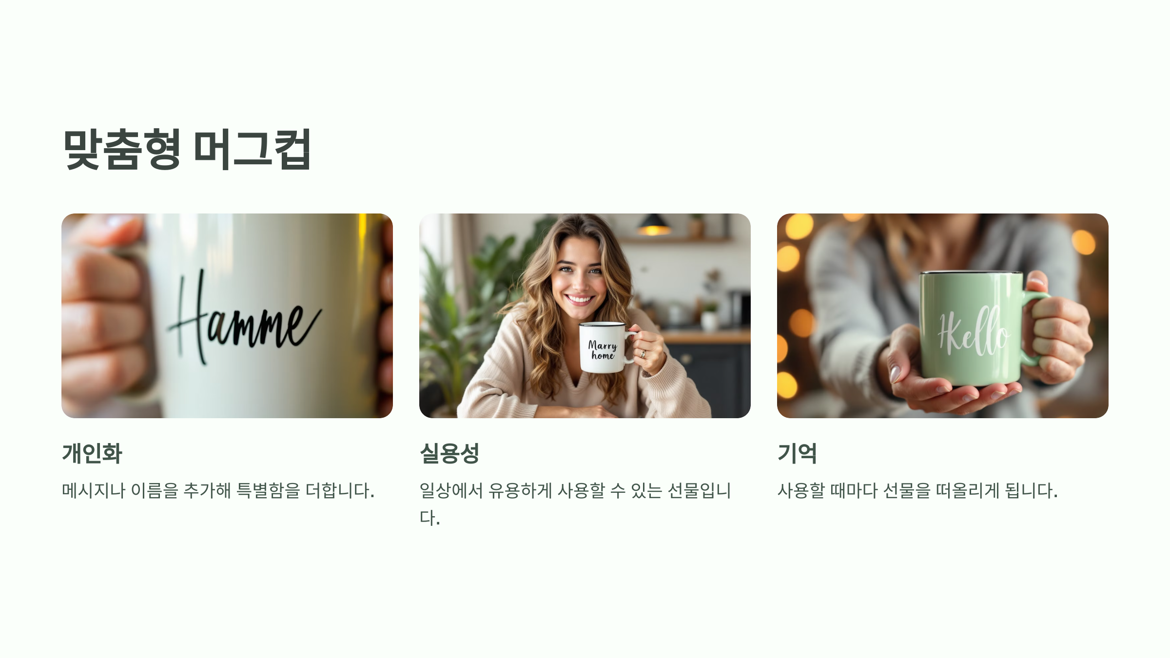 A: 다이어리, 맞춤형 머그컵 등이 실용적입니다.