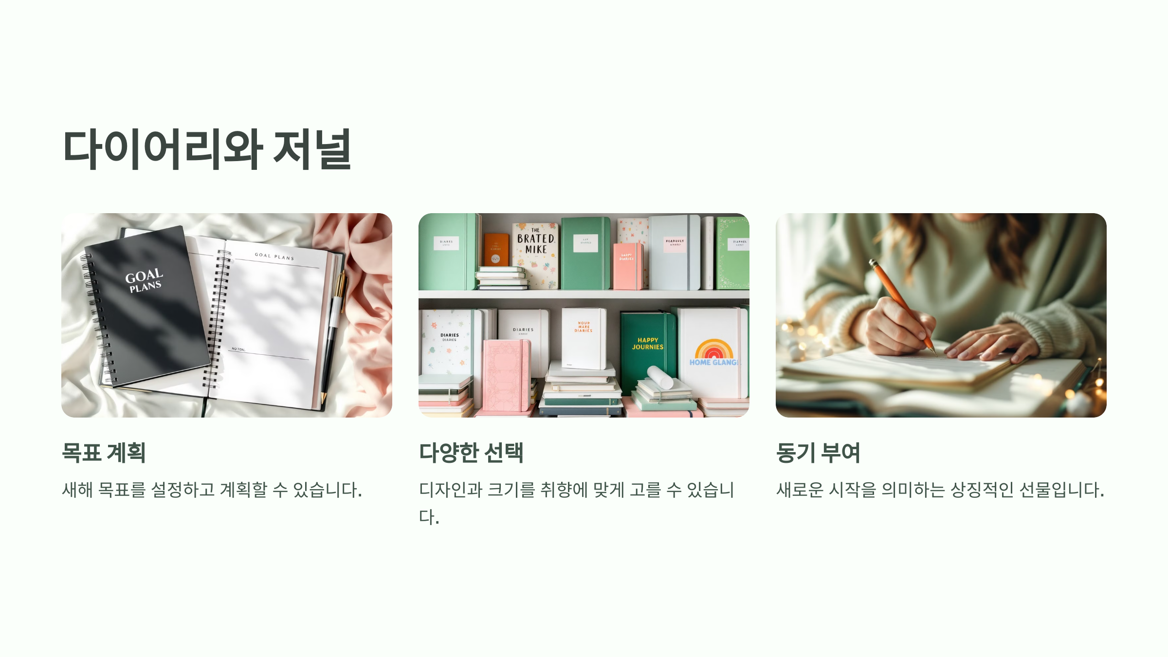 새해 목표를 계획할 수 있는 다이어리는 실용적입니다.