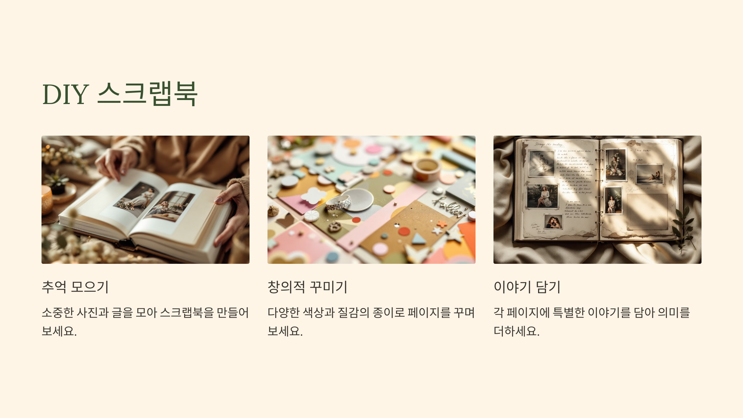 스크랩북은 시간을 들여 정성을 담아 제작됩니다.