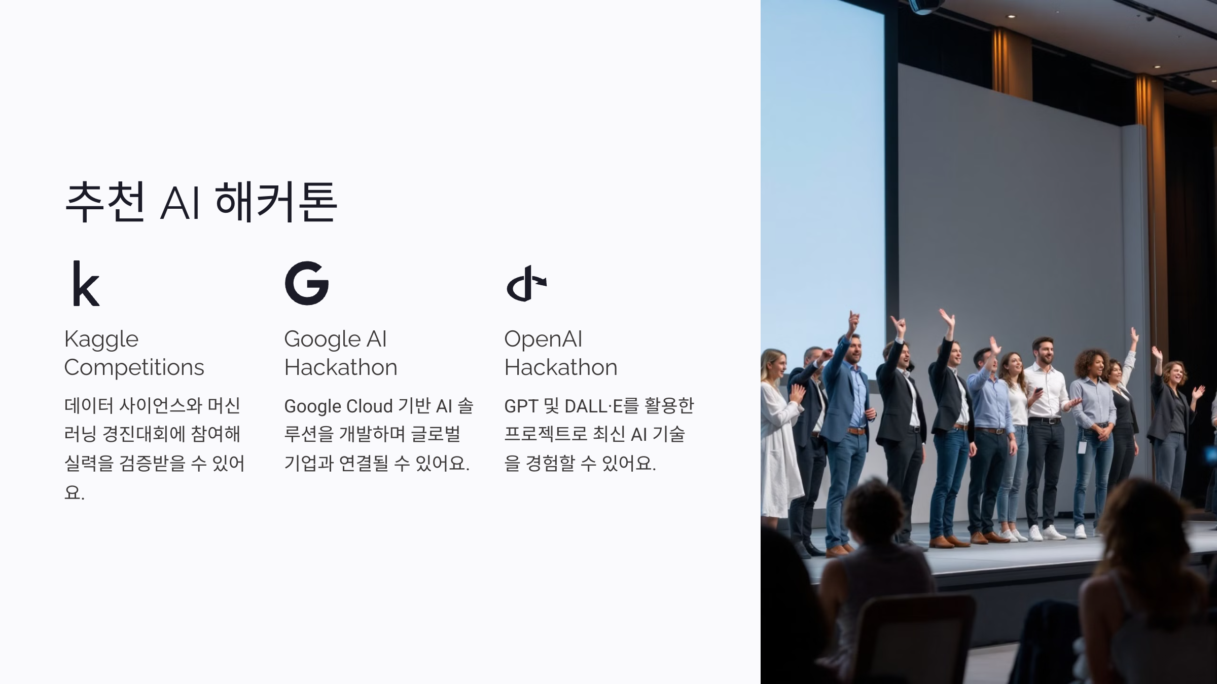 | AI 컨퍼런스 | 최신 트렌드 학습 및 전문가와 직접 교류 |