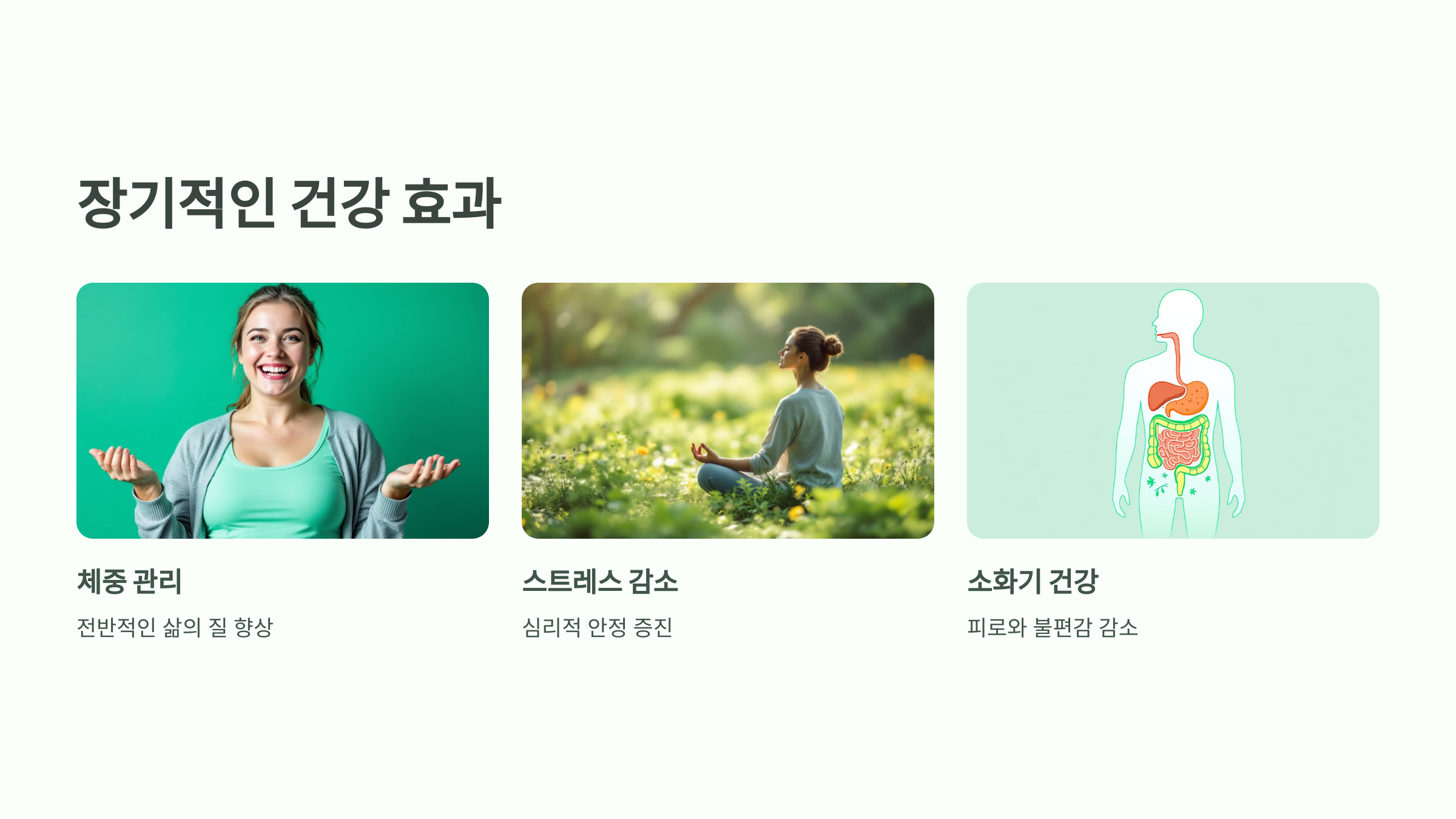 체중 관리와 스트레스 감소로 전반적인 삶의 질이 향상됩니다.