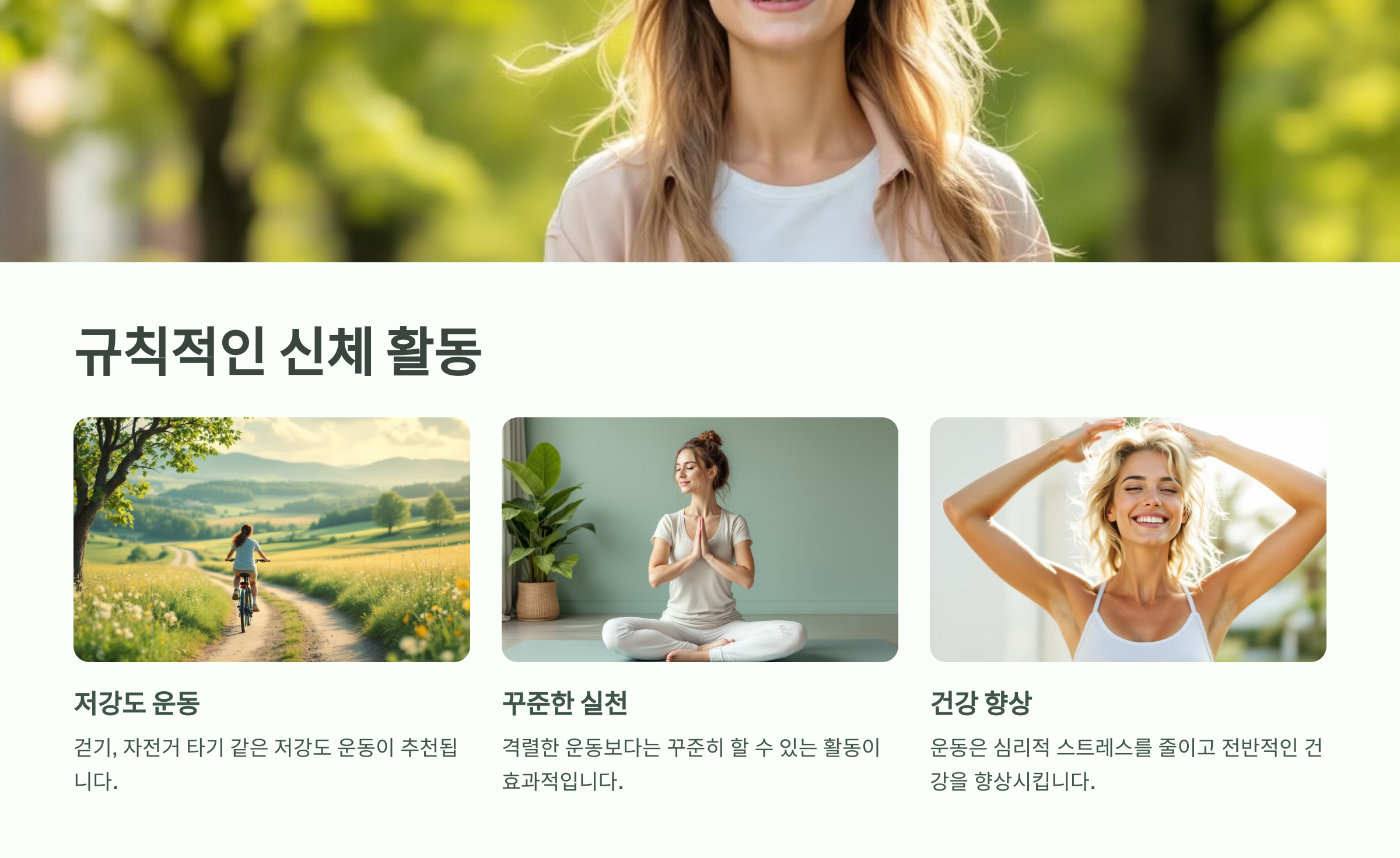 운동은 심리적 스트레스를 줄이고 전반적인 건강을 향상시킵니다.