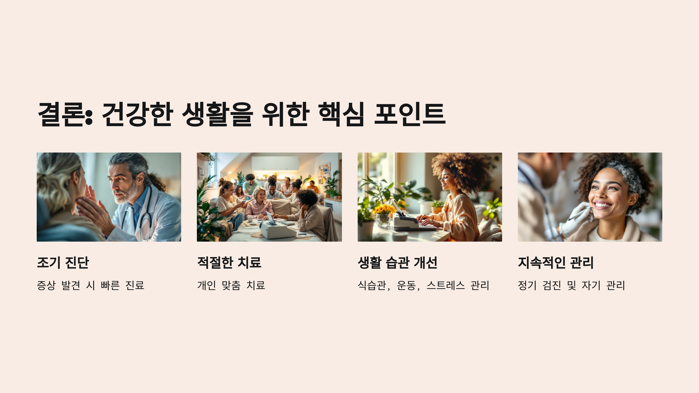 약물 치료와 생활 습관 개선이 동시에 이루어져야 합니다.