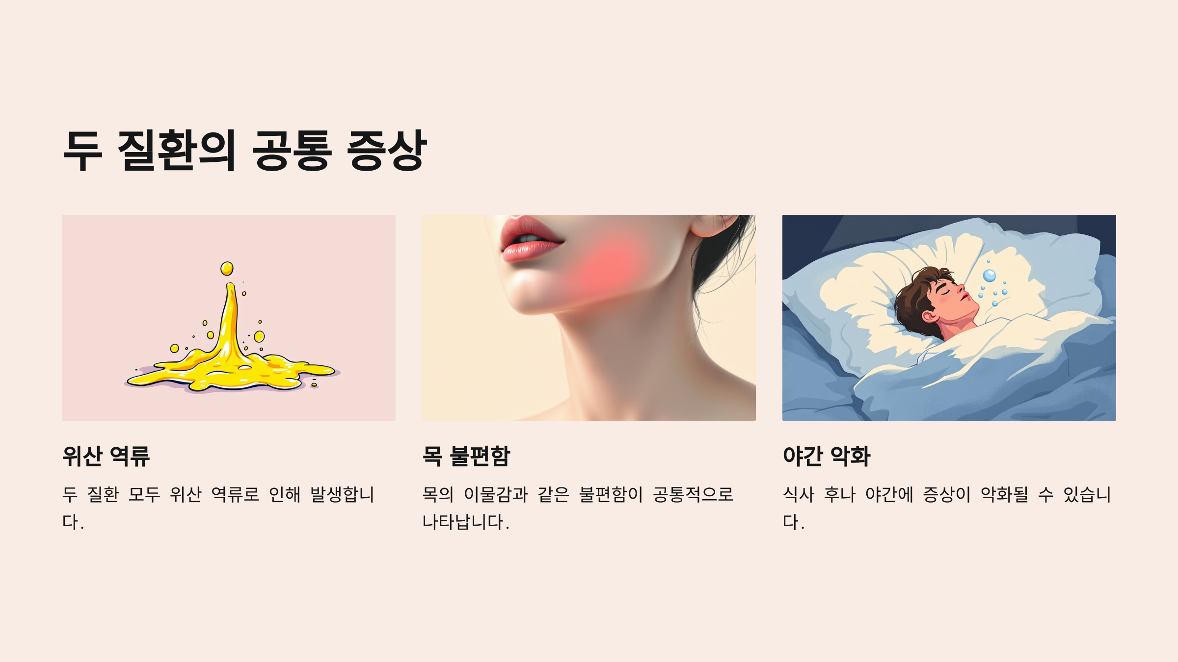 두 질환 모두 위산 역류로 인해 발생합니다.