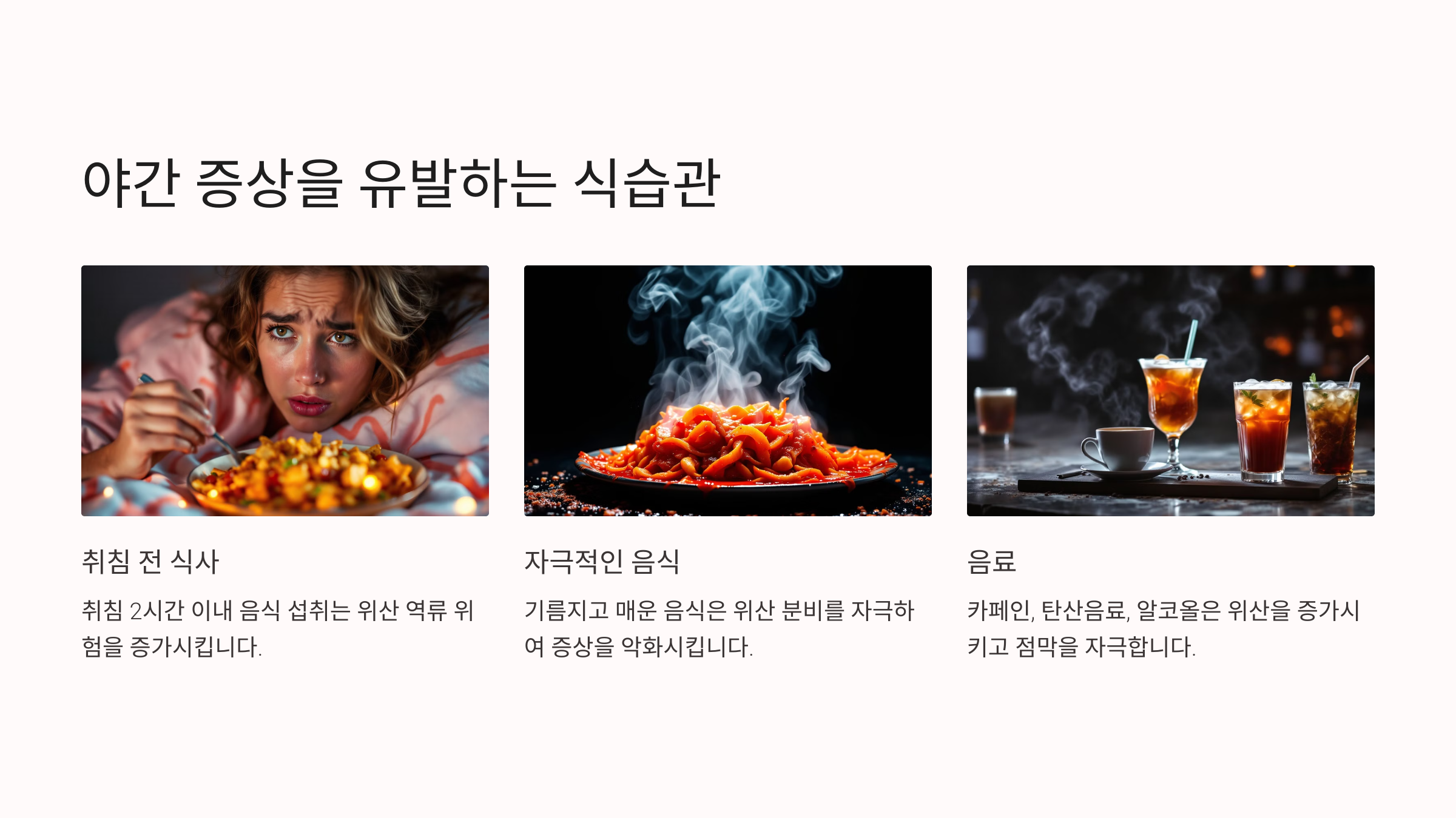 밤에는 위산 분비가 자연적으로 증가하는 경향이 있습니다.