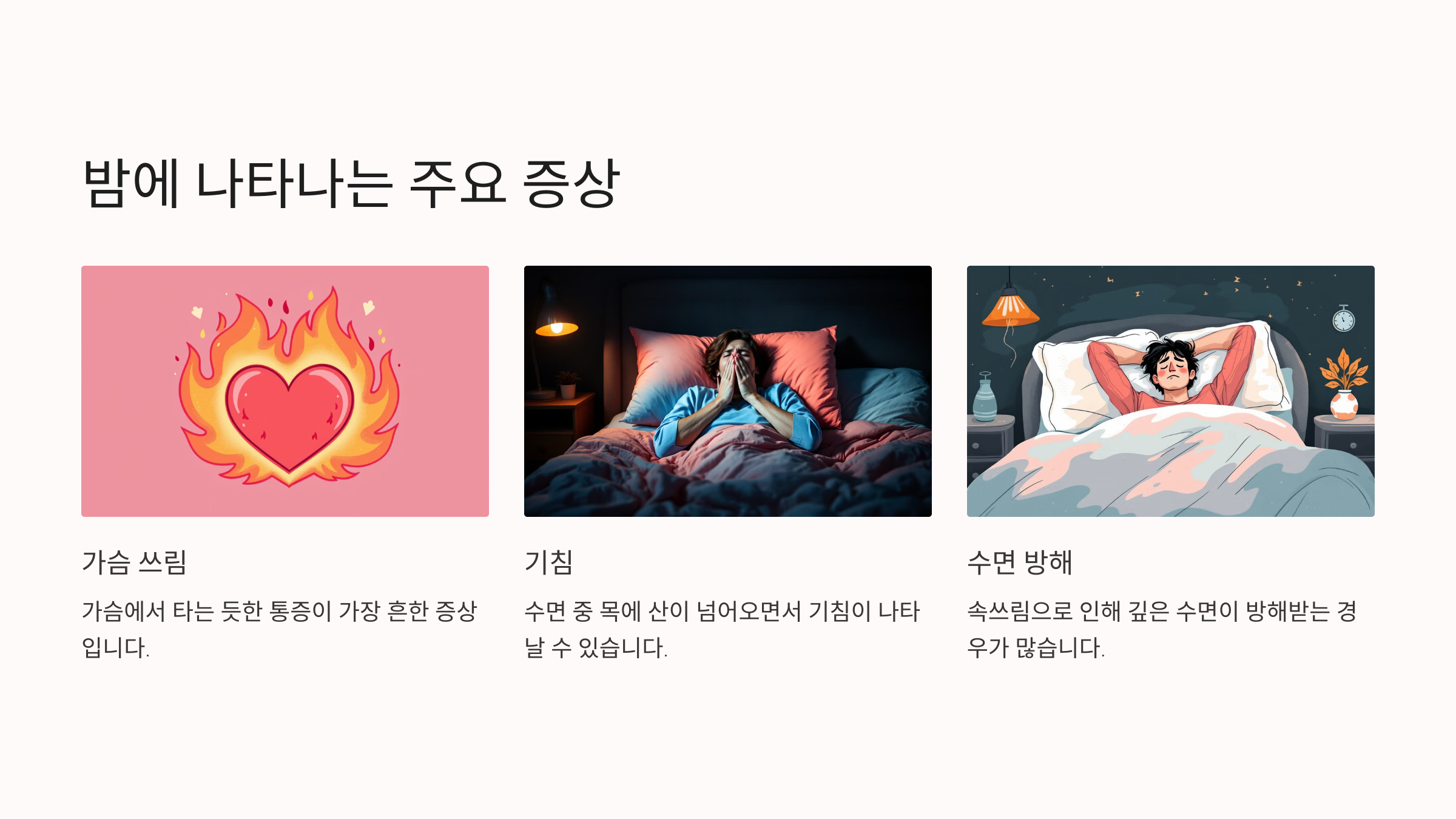 속쓰림으로 인해 깊은 수면이 방해받는 경우가 많습니다.