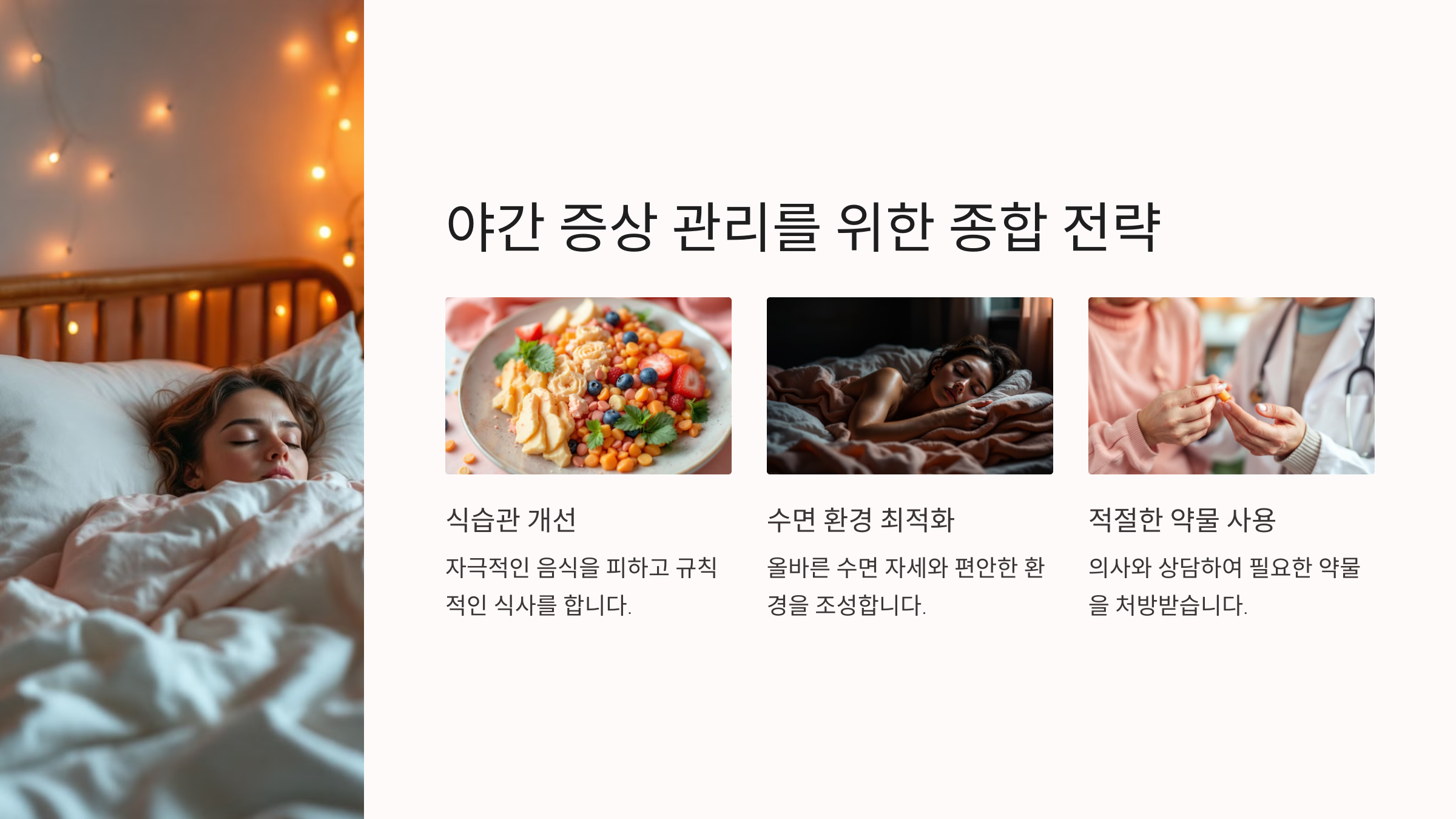 Q: 야간 증상을 예방하려면 무엇을 피해야 하나요?