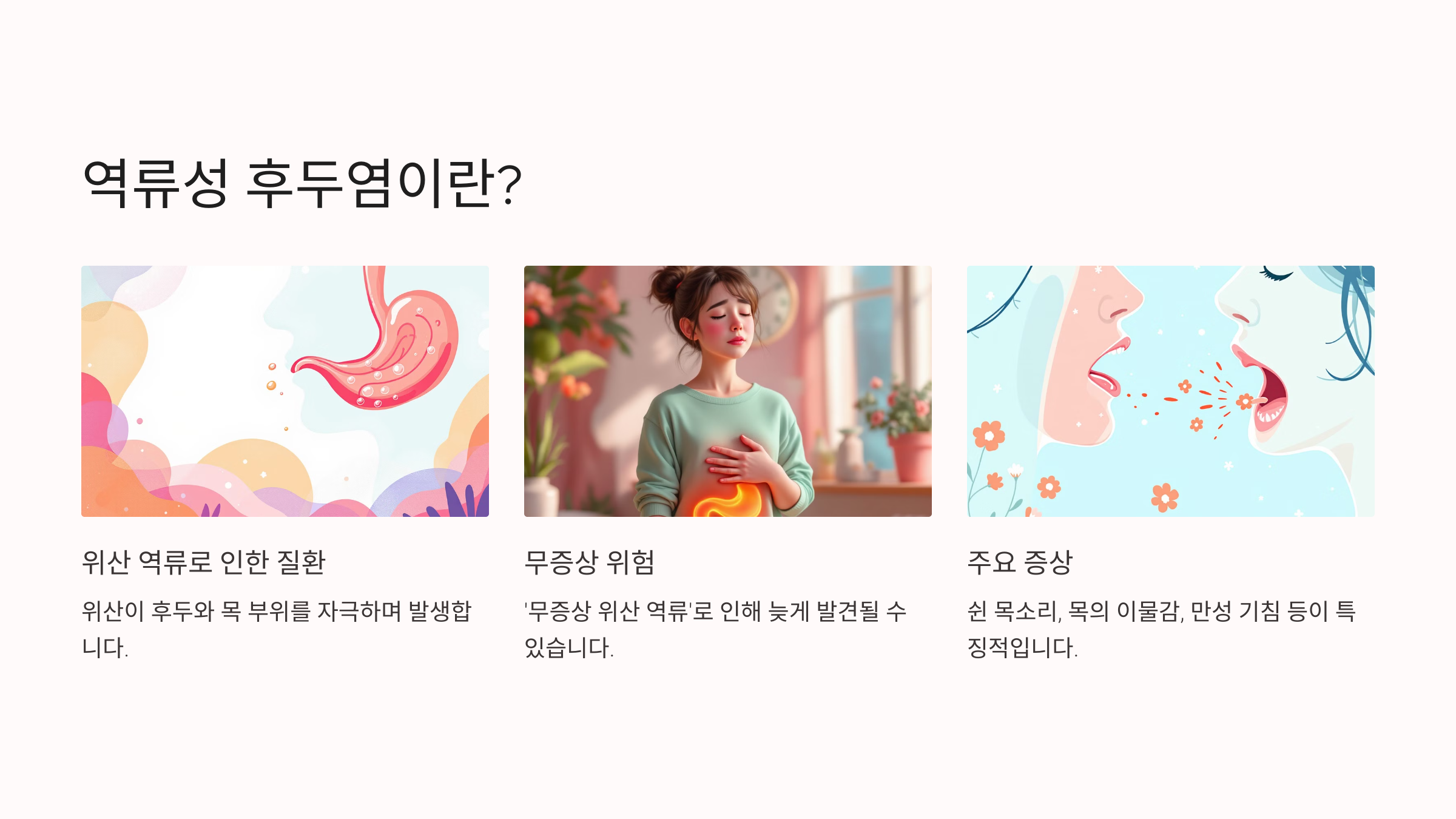 역류성 후두염은 위산이 후두와 목 부위를 자극하며 발생하는 질환입니다.