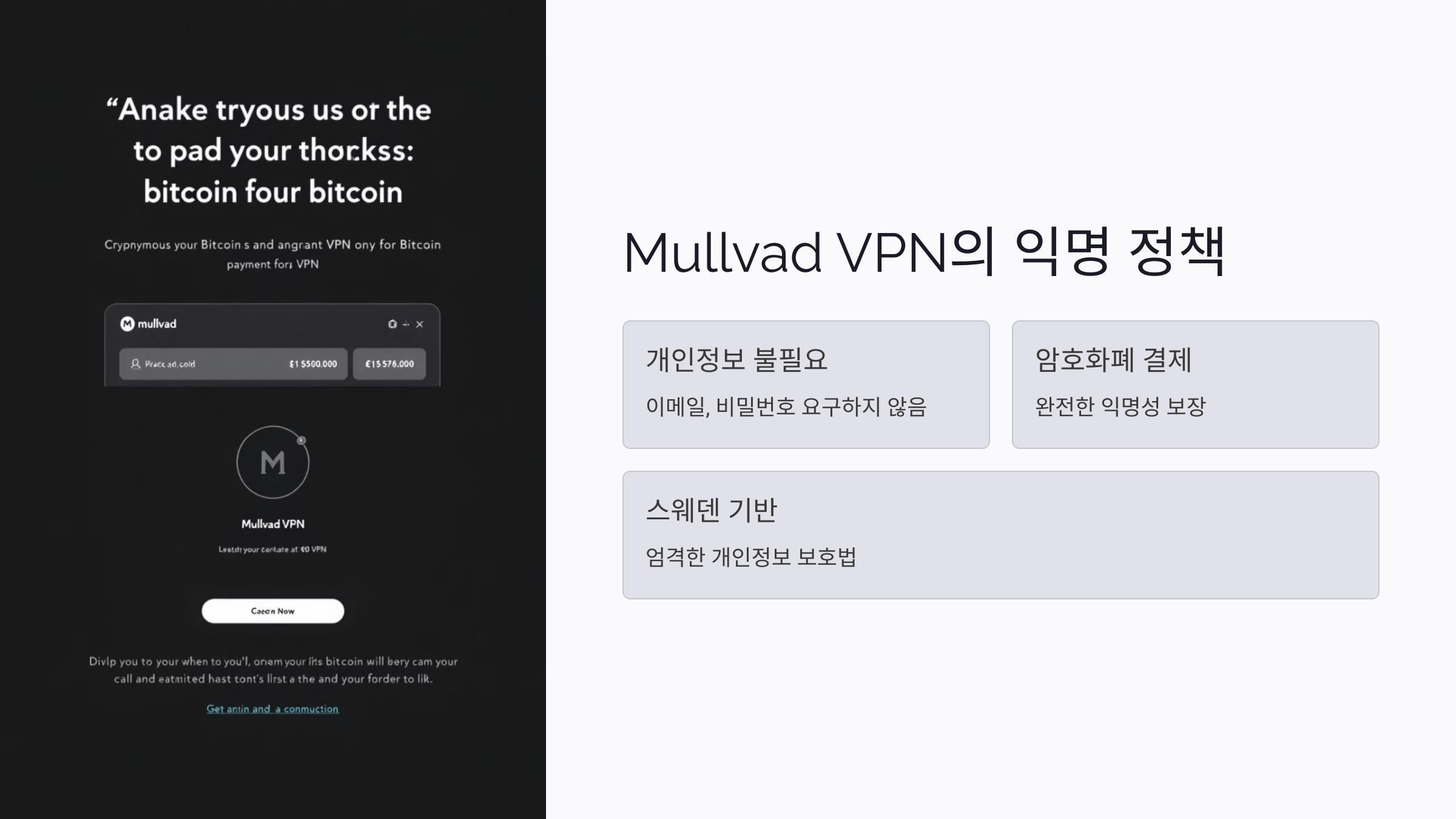 이메일조차 받지 않기 때문에 사용자 식별이 불가능하고, 결제도 비트코인이나 현금으로 할 수 있어요. 익명성을 최고로 중요시하는 사람이라면 Mullvad이 거의 유일한 선택지일 수 있어요.