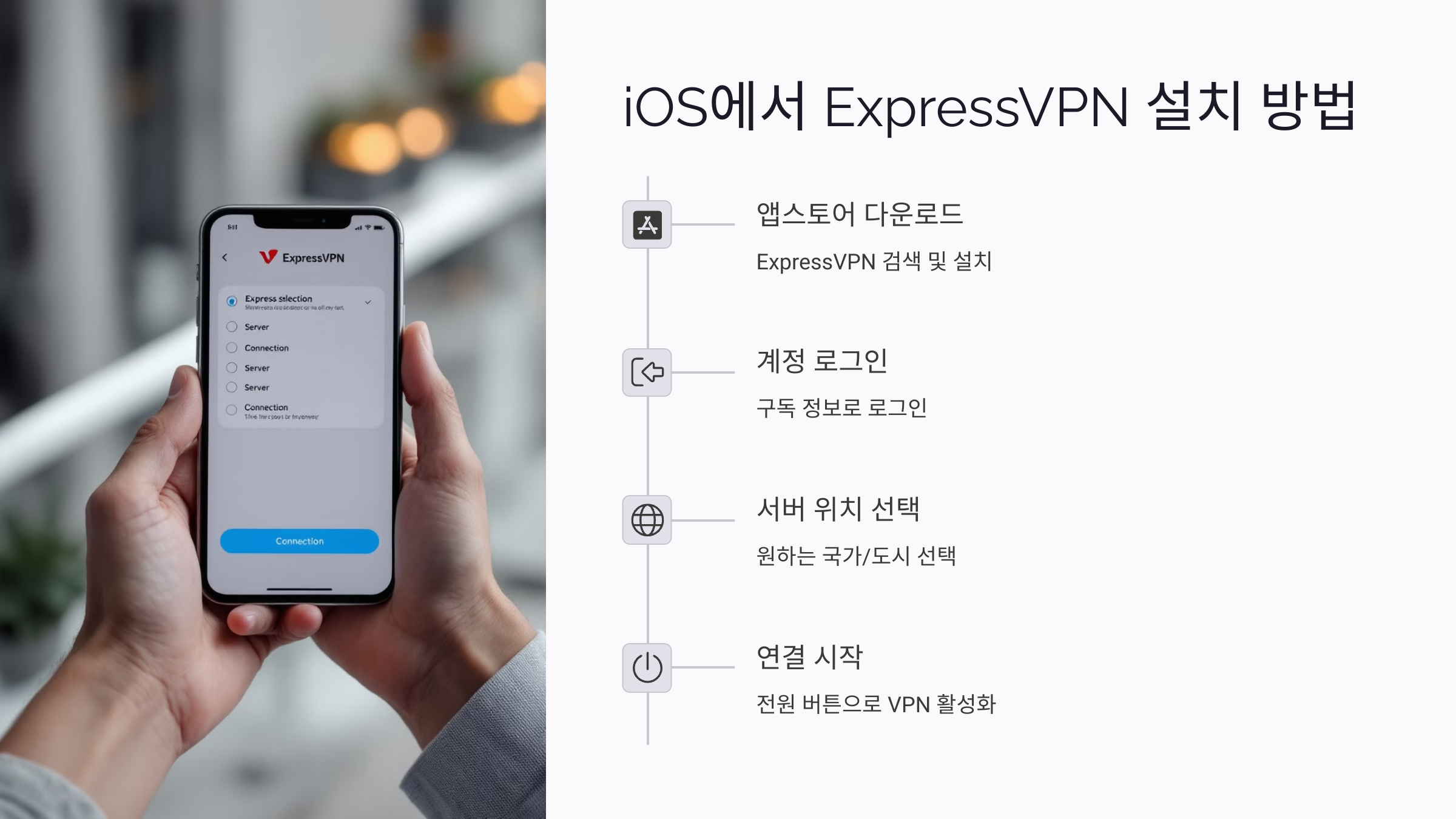 | 1. 앱 설치 | App Store에서 ExpressVPN 설치 |