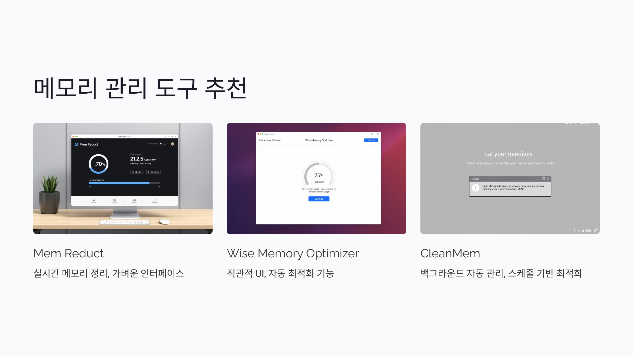 | CleanMem | 백그라운드 자동 관리 | 스케줄 기반 최적화 | 장시간 사용자 |