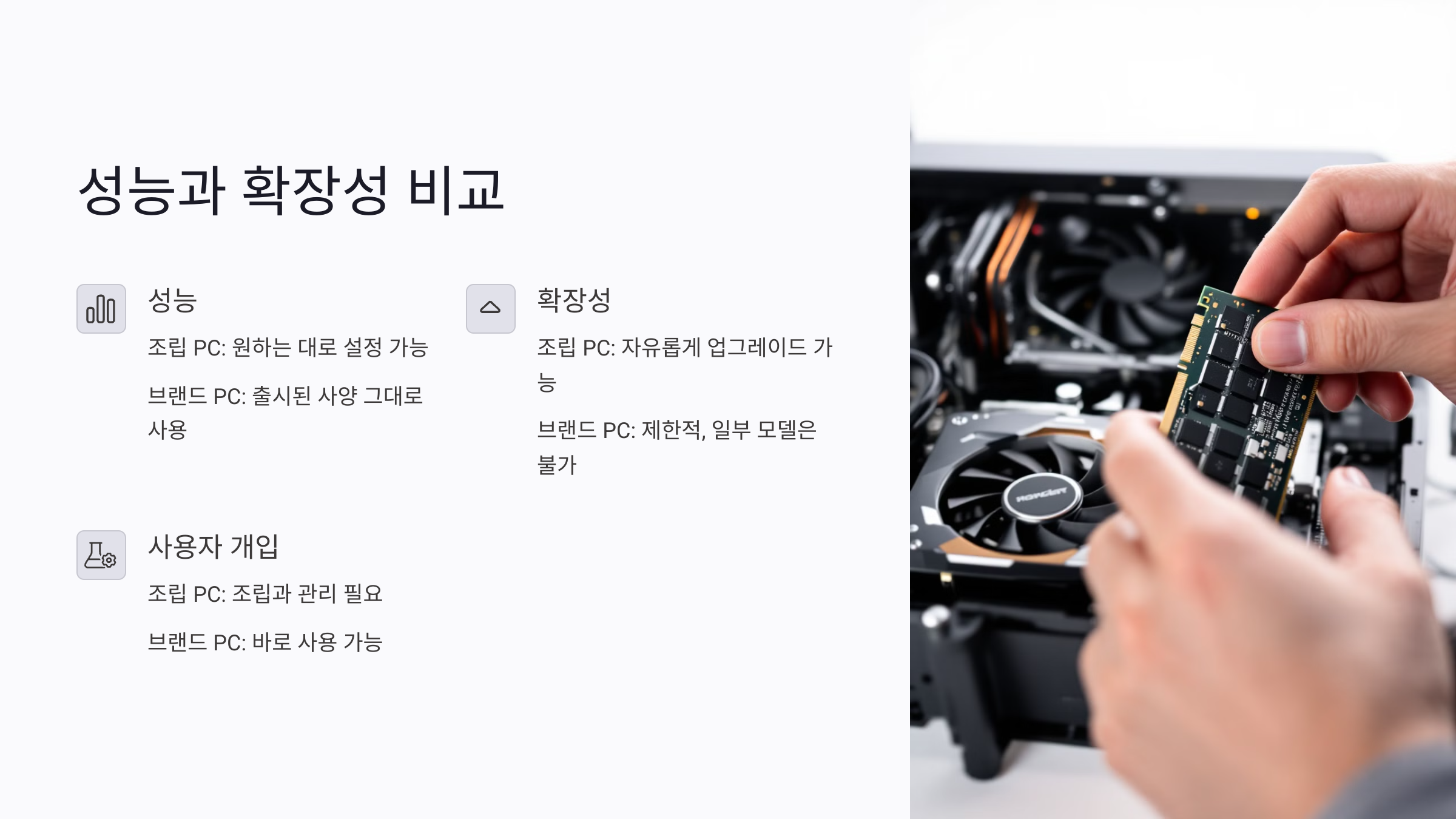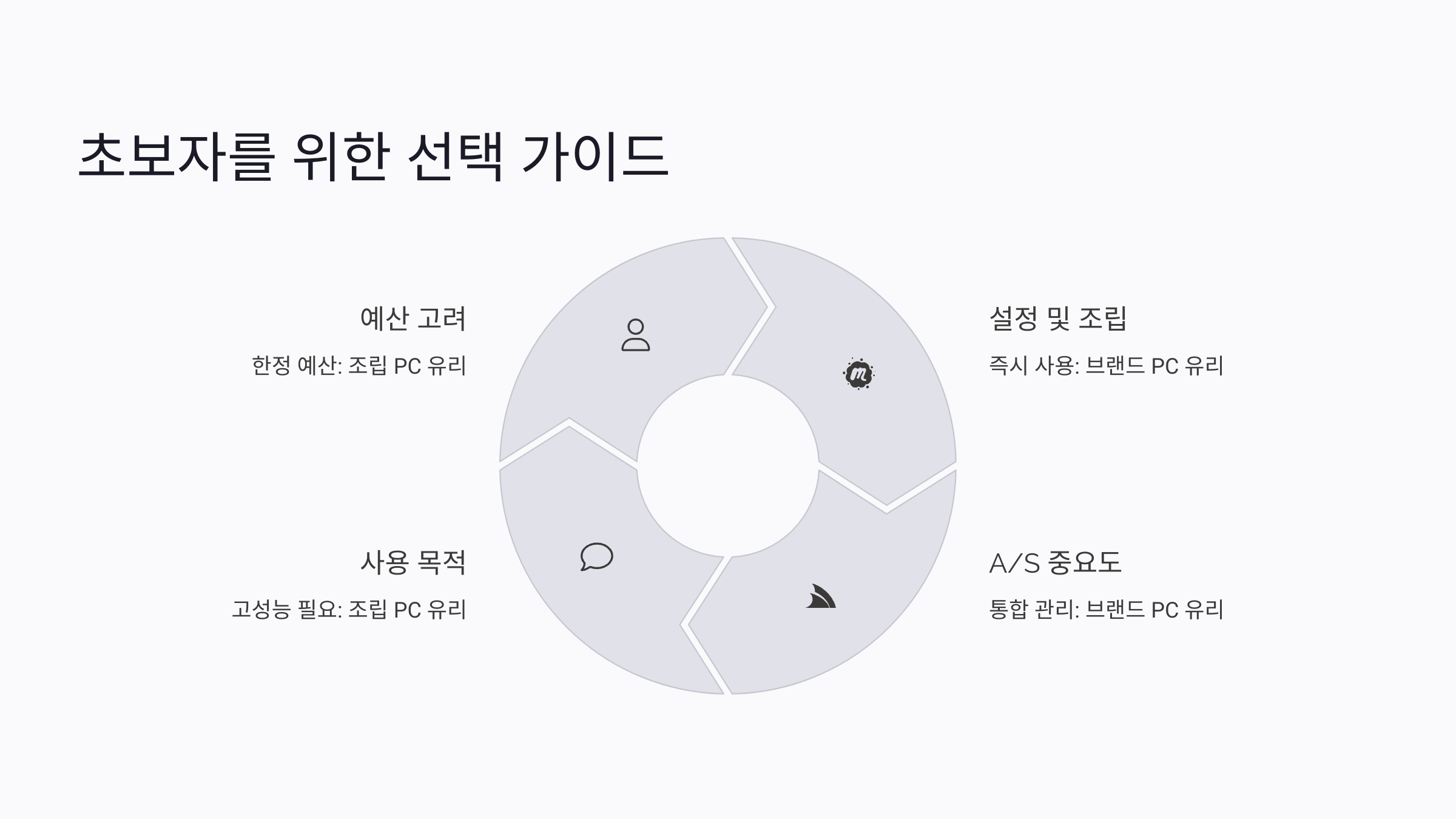 초보자라면 브랜드 PC가 더 편할 수도 있지만, 장기적으로 보면 조립 PC가 더 좋은 선택이 될 수도 있어요.