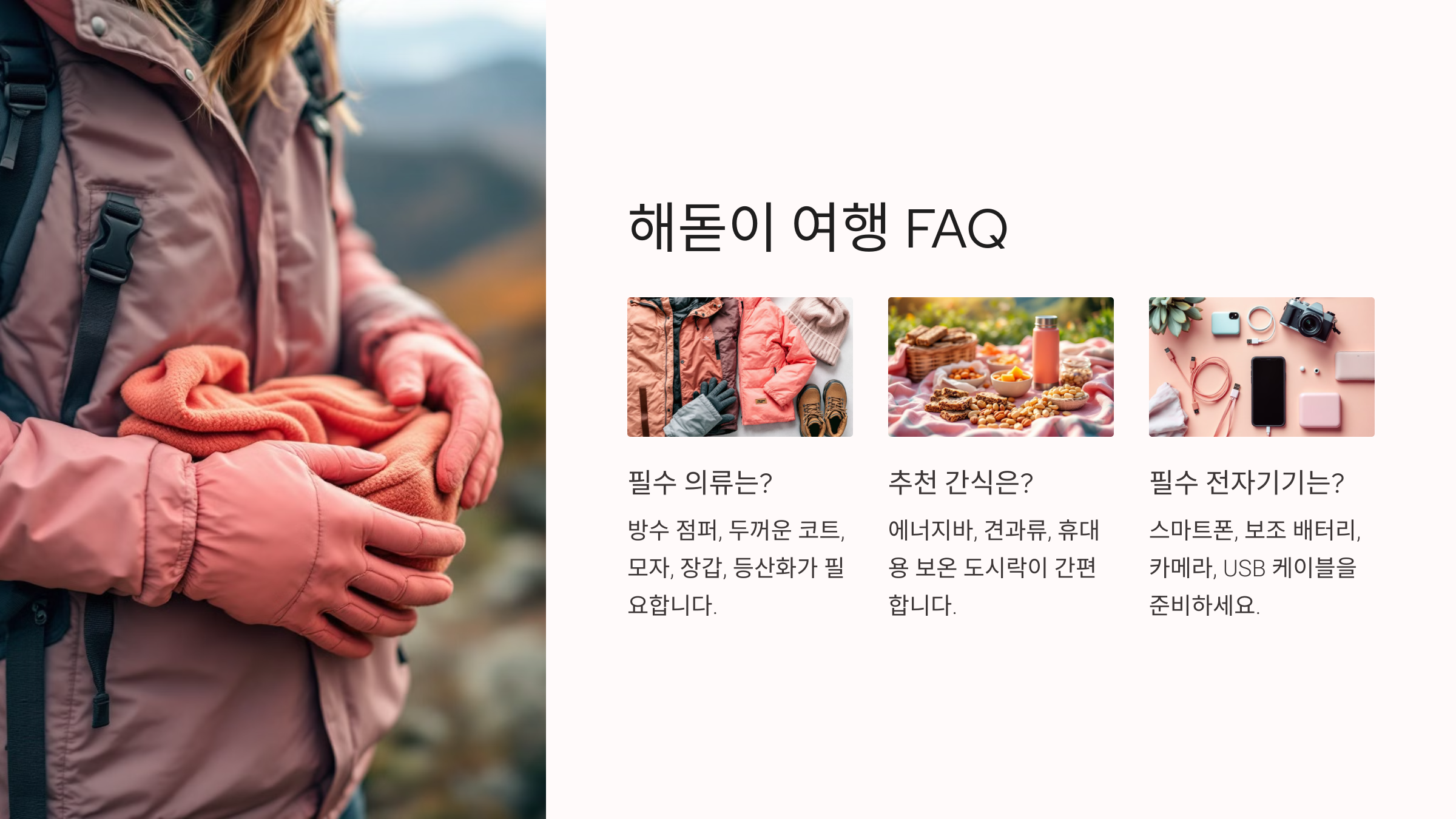 Q: 해돋이 여행에 필수적인 옷은 무엇인가요?