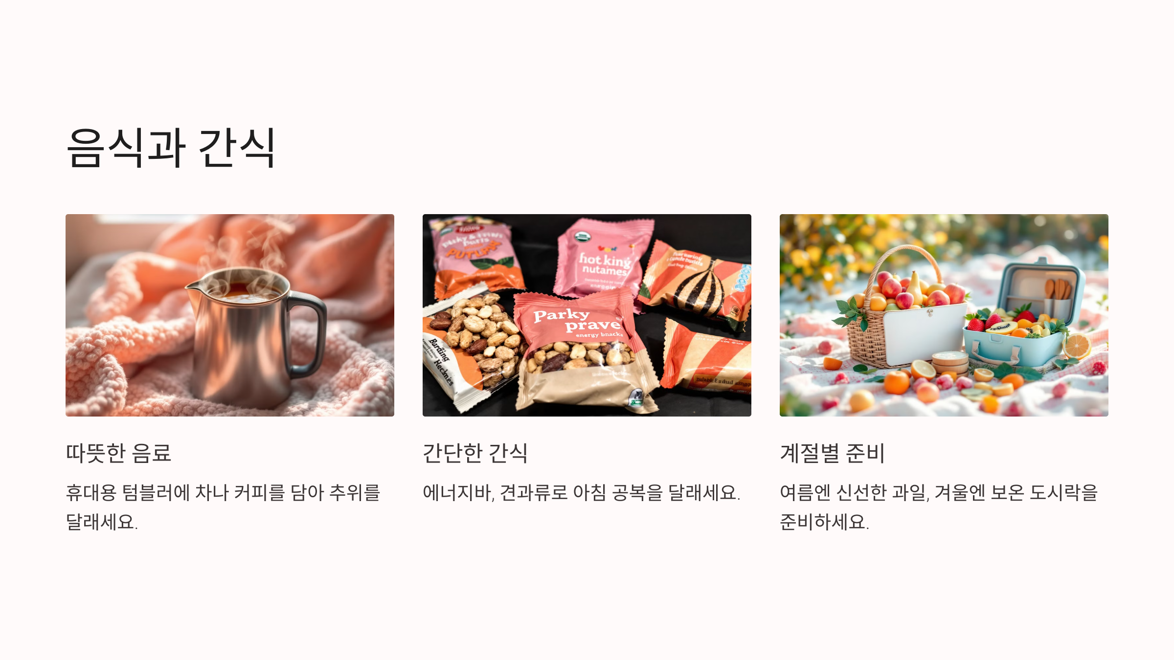 A: 에너지바, 견과류, 휴대용 보온 도시락 등이 간편합니다.