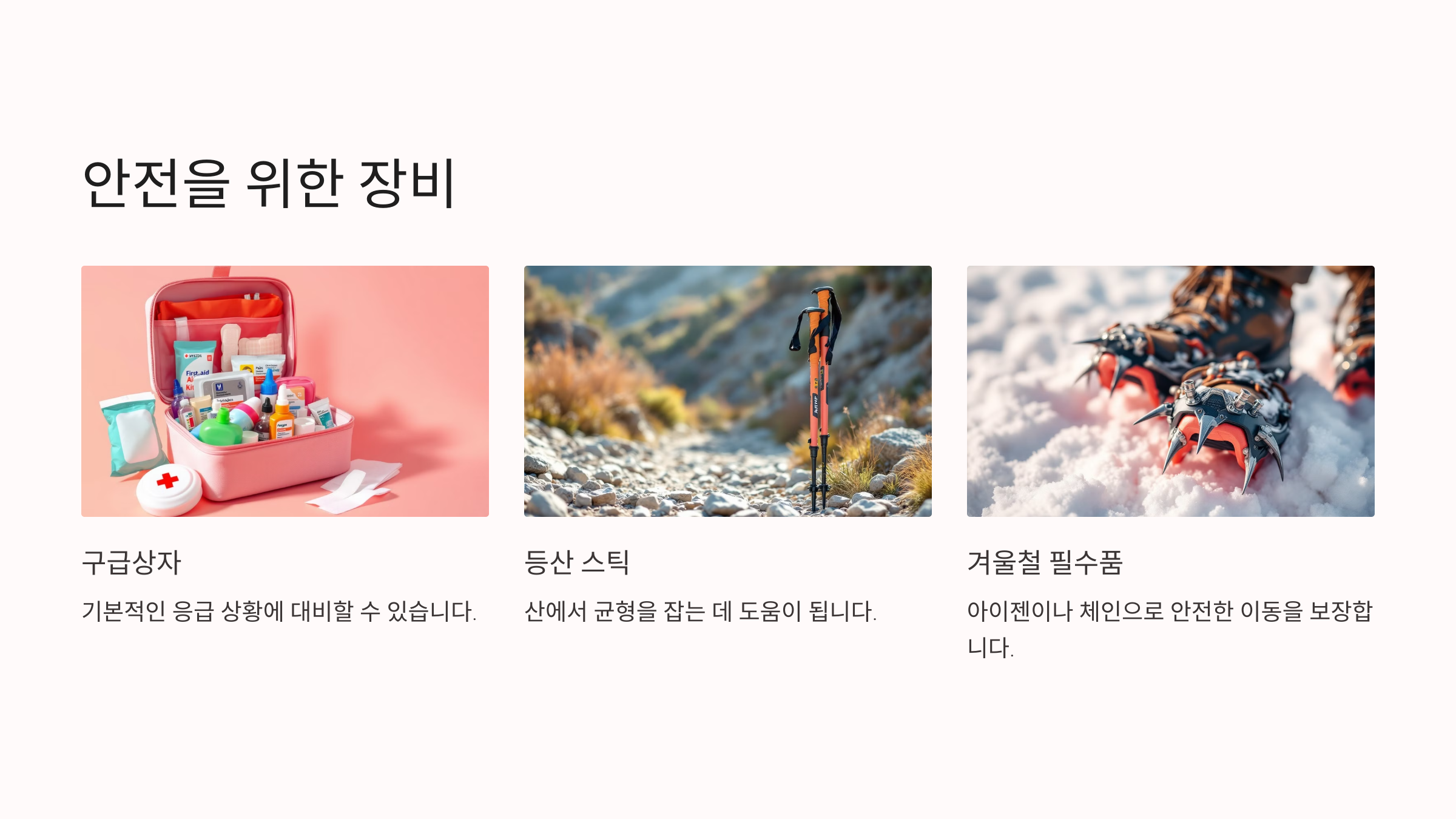 A: 경로 점검, 기상 예보 확인, 주요 준비물 확인이 중요합니다.