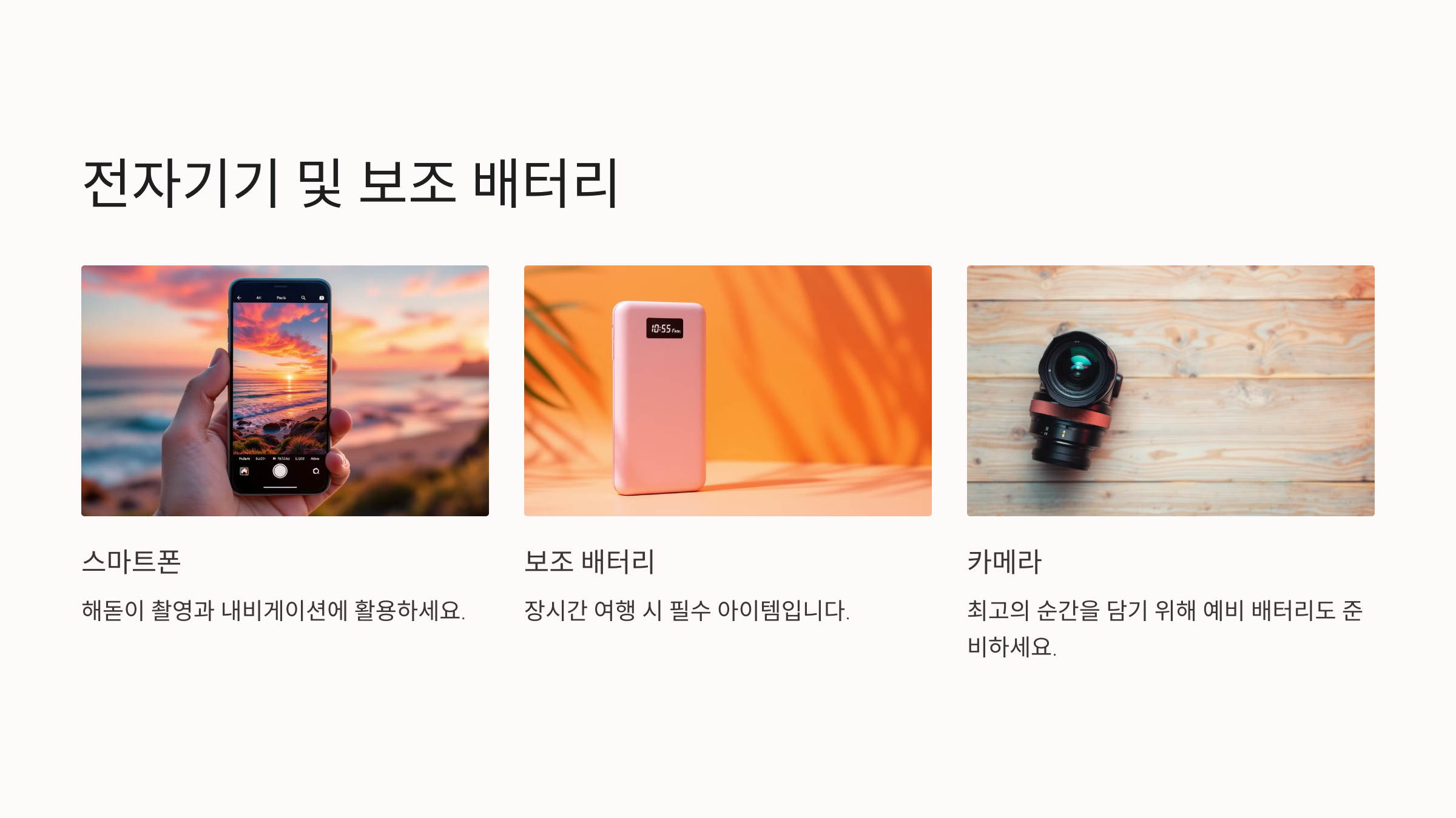 Q: 해돋이 준비 시 휴대해야 할 전자기기는 무엇인가요?