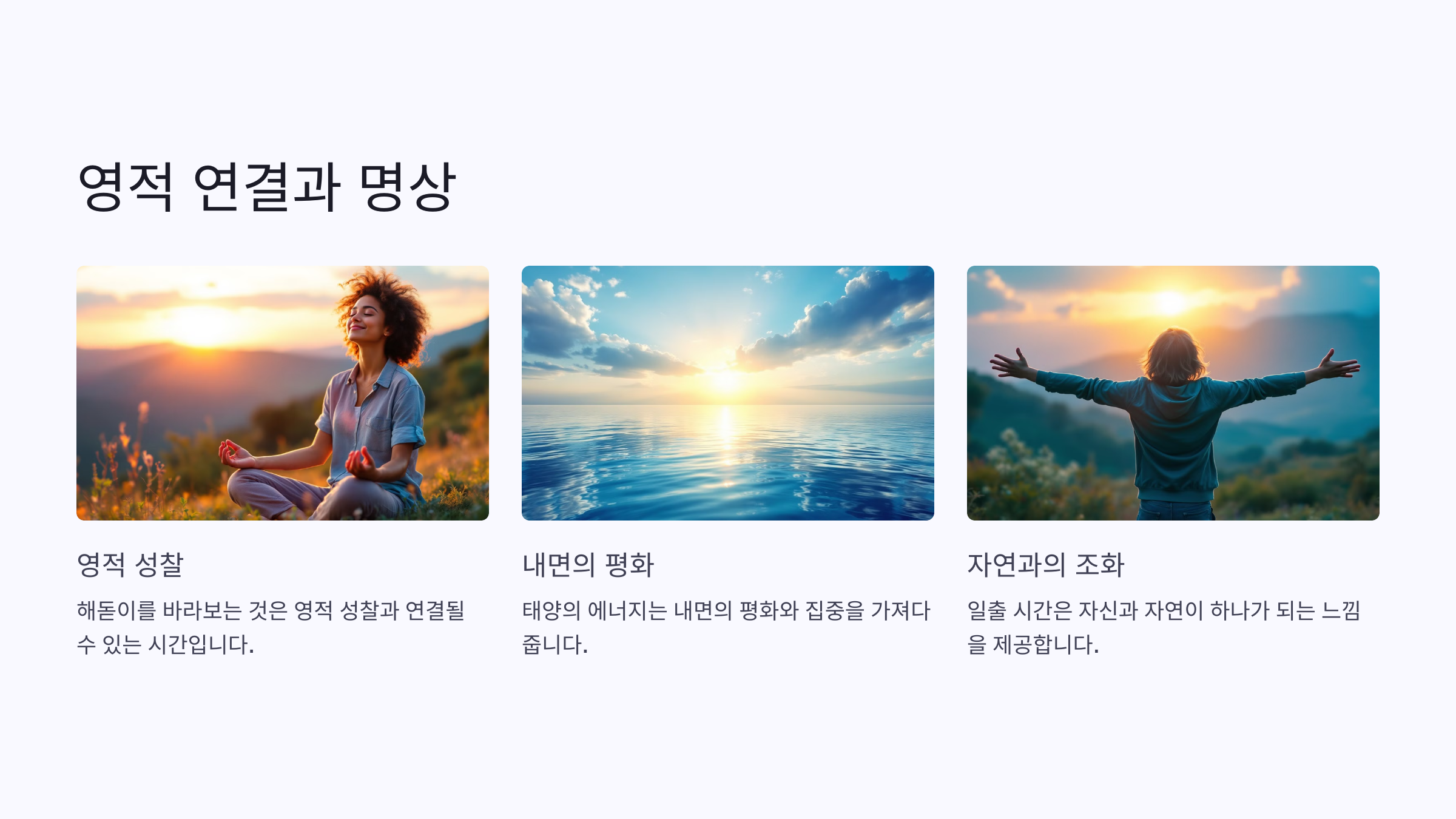 해돋이는 명상과 심호흡 연습을 시작하기에 좋은 환경을 제공합니다.