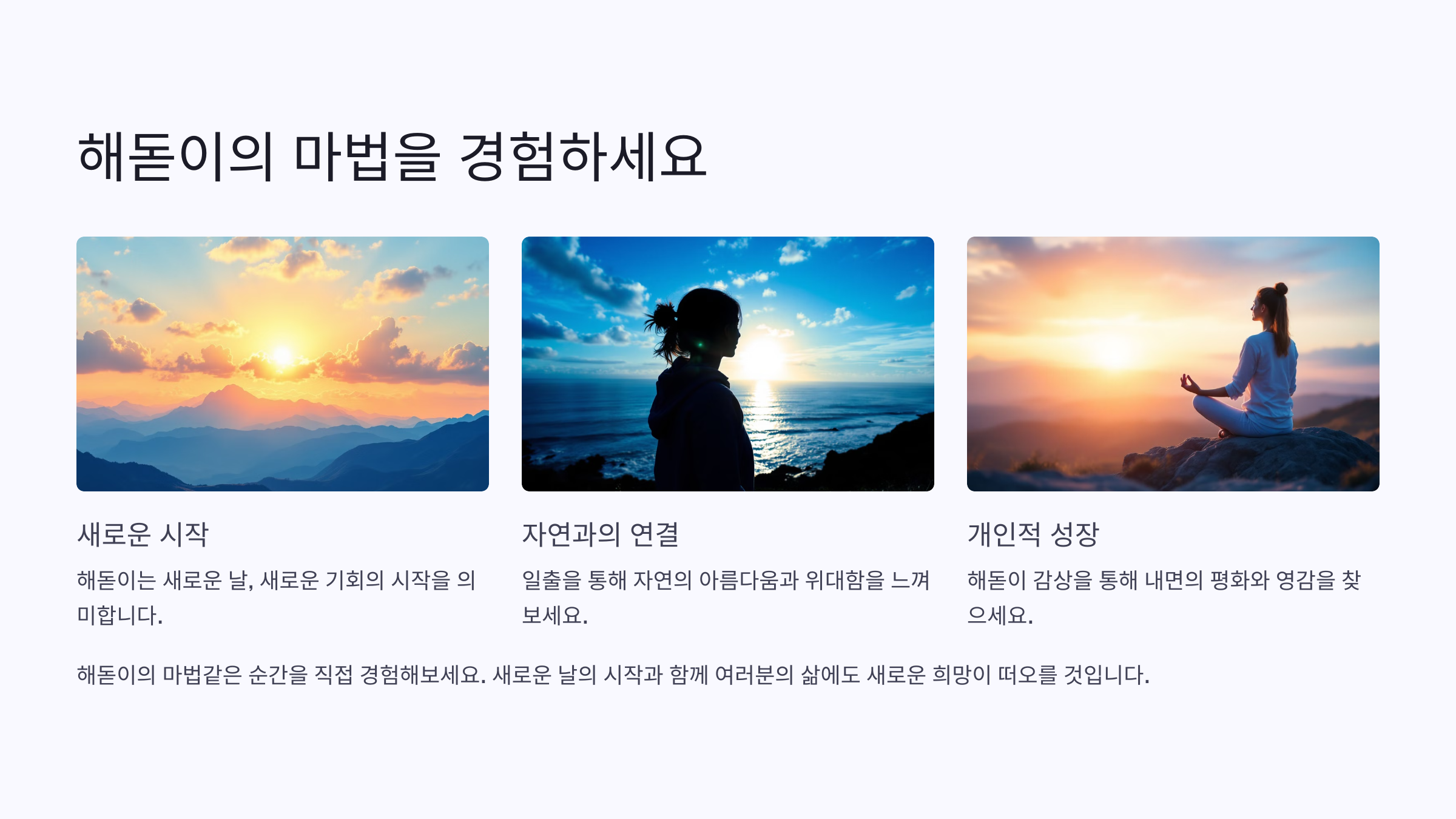 해돋이를 통해 자연의 위대함과 삶의 아름다움을 느낄 수 있습니다.