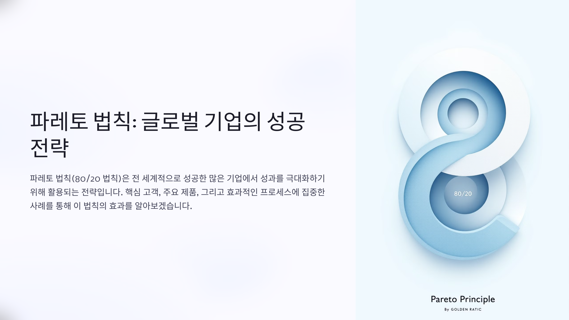 구글의 사례는 파레토 법칙을 통해 핵심 성과를 극대화하는 전략의 모범 사례입니다.