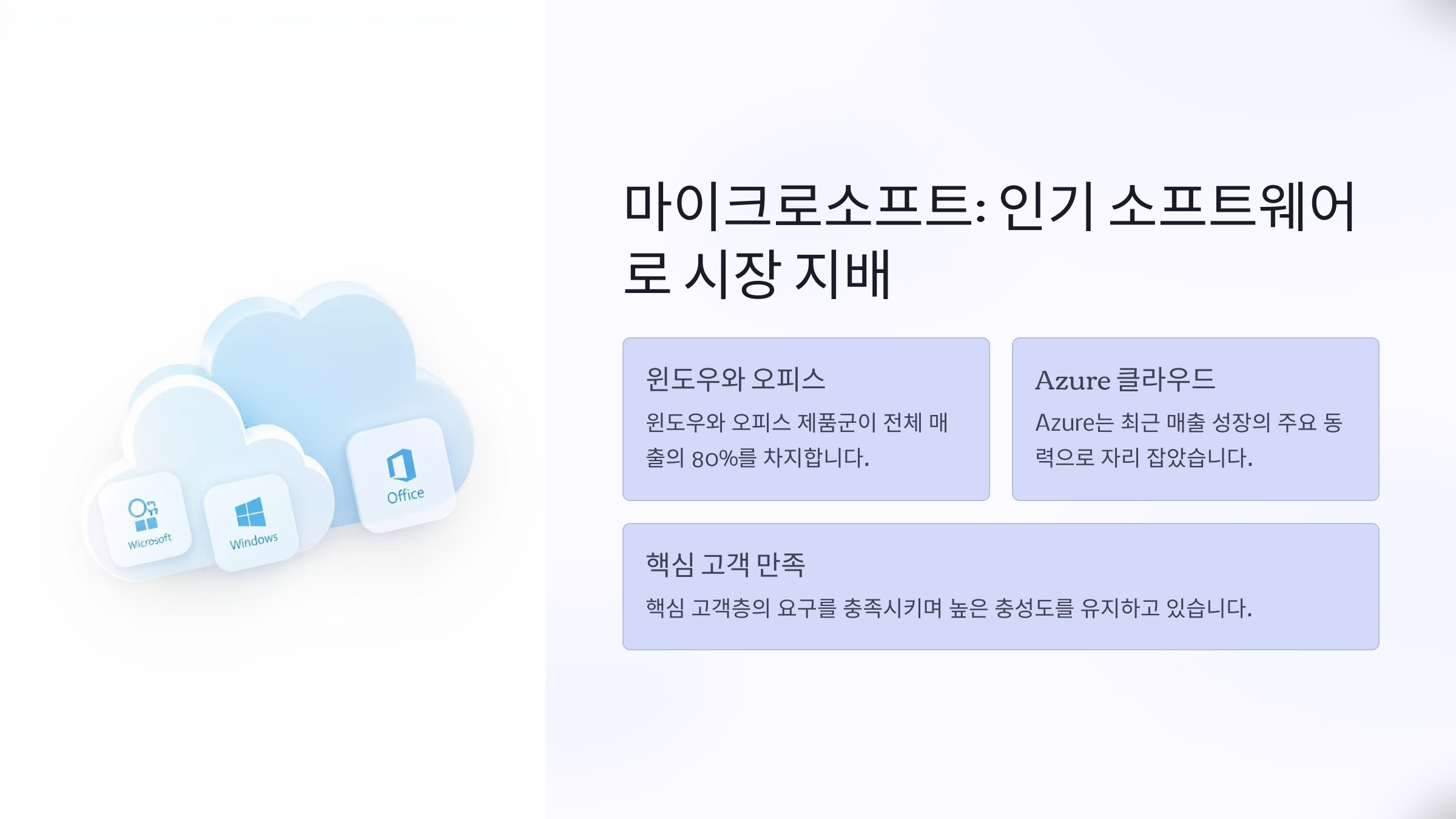 마이크로소프트(Microsoft): 인기 소프트웨어로 시장 지배