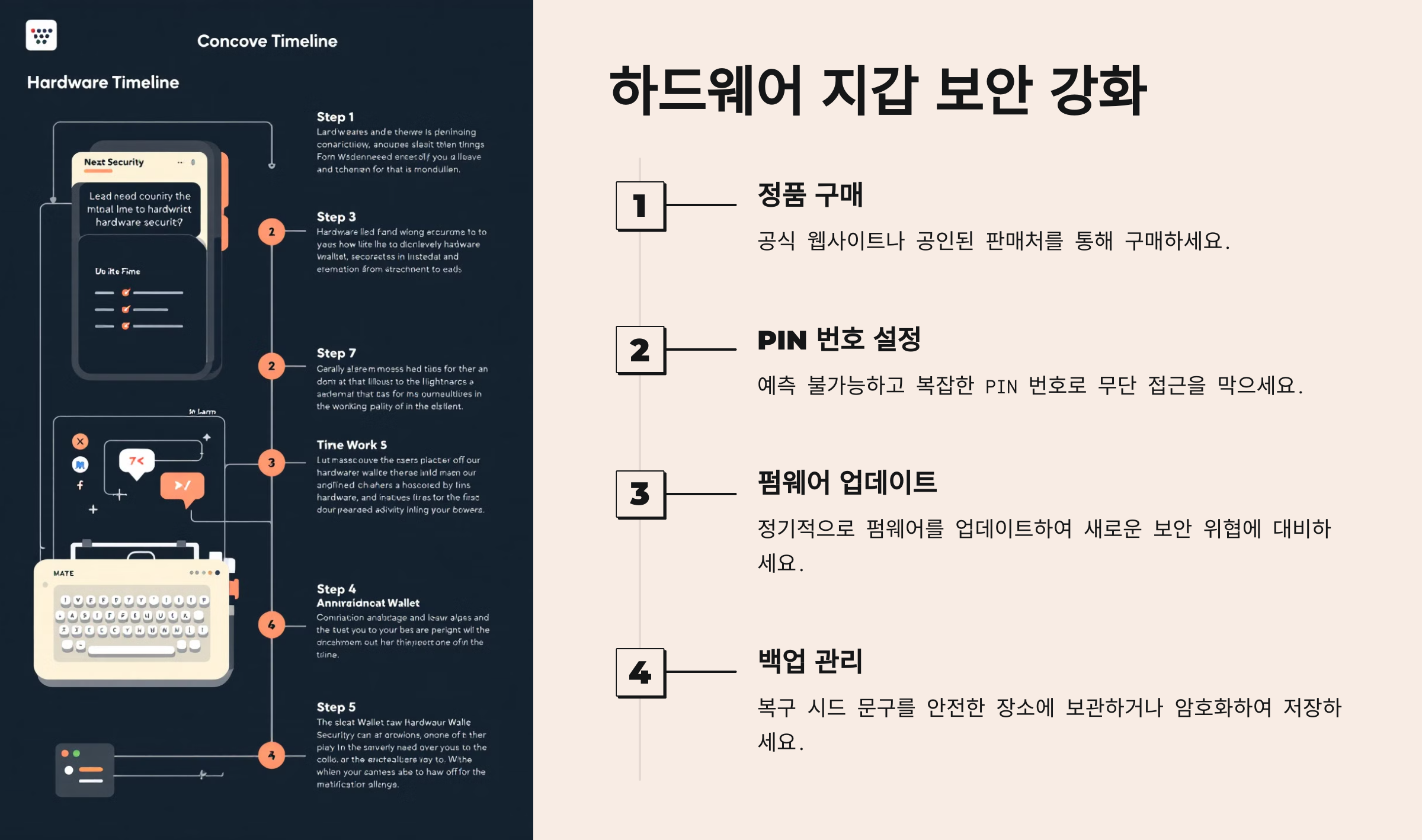 PIN 번호 설정: 예측이 불가능하고 복잡한 PIN 번호를 설정하여 하드웨어 지갑의 무단 접근을 막아야 합니다.