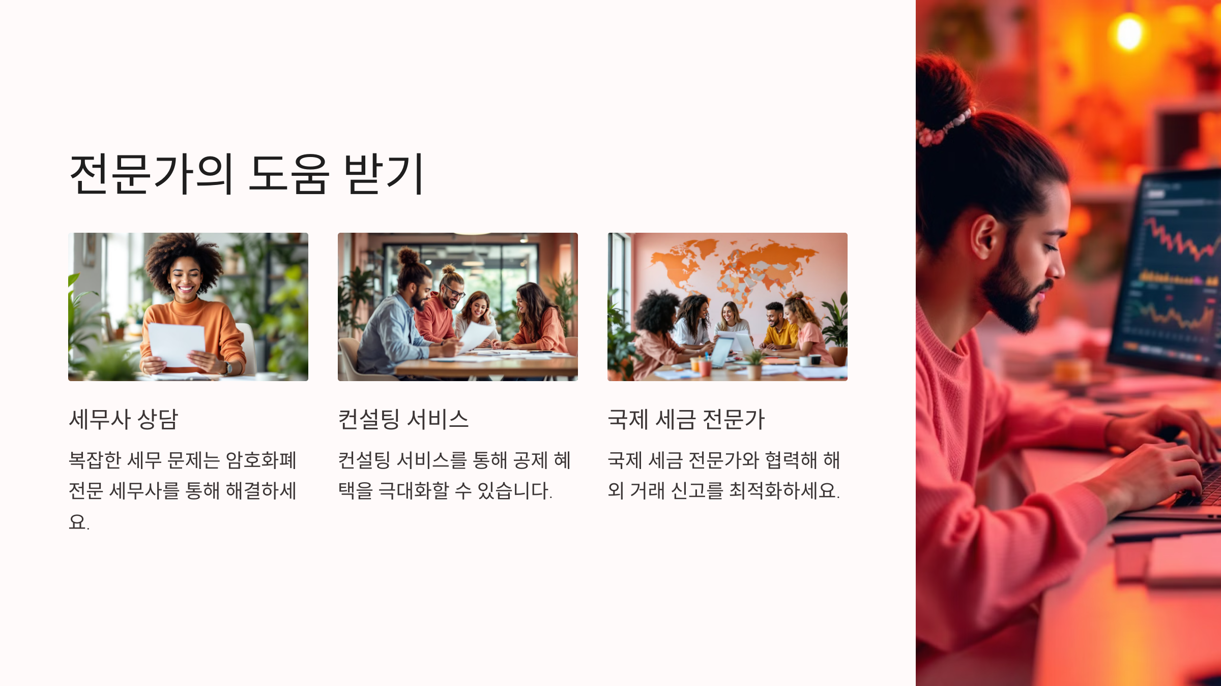 복잡한 세무 문제는 암호화폐 전문 세무사를 통해 해결하세요.
