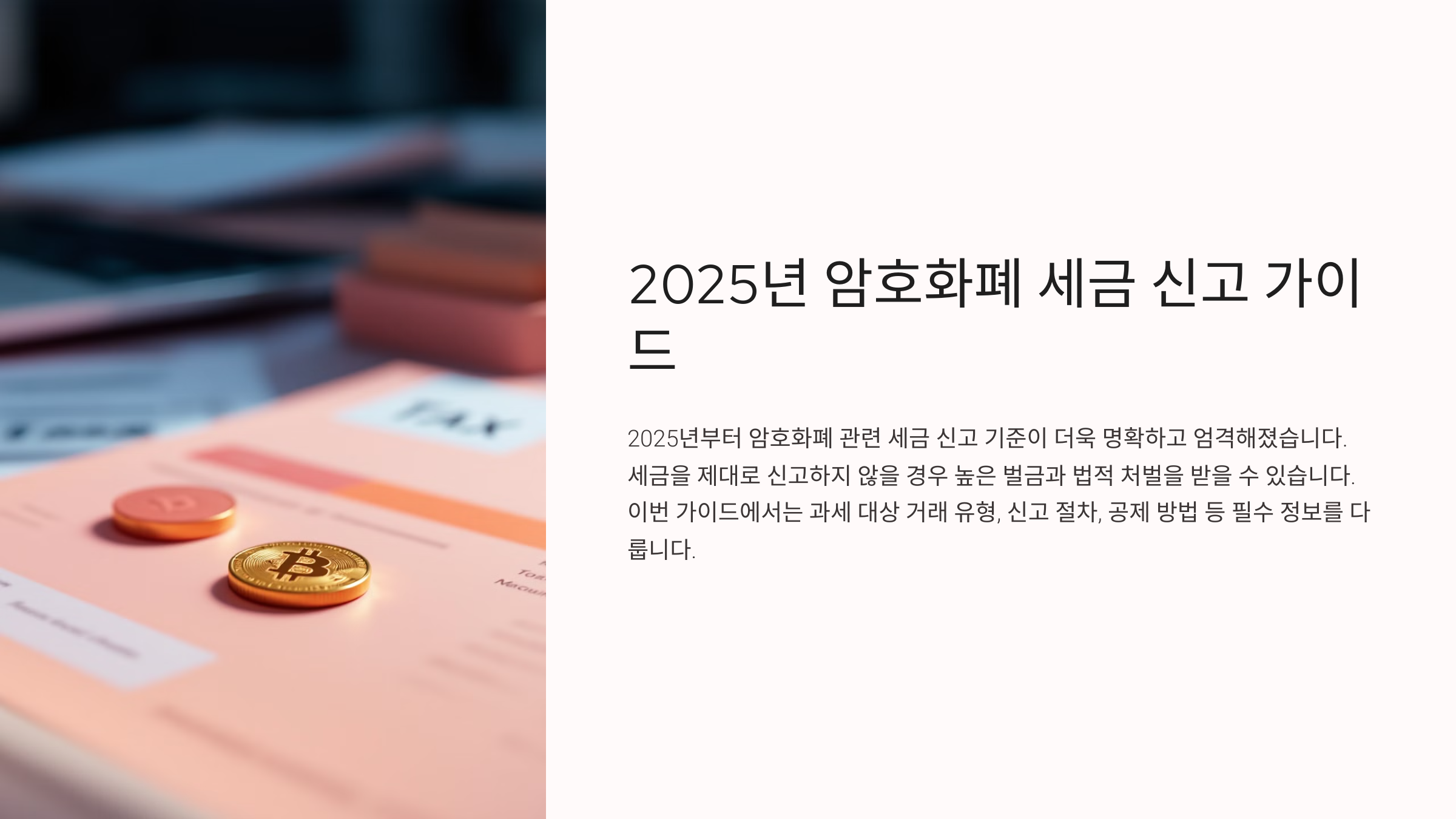 2025년부터 암호화폐 관련 세금 신고 기준이 더욱 명확하고 엄격해졌습니다. 세금을 제대로 신고하지 않을 경우 높은 벌금과 법적 처벌을 받을 수 있습니다. 이번 가이드에서는 과세 대상 거래 유형, 신고 절차, 공제 방법 등 필수 정보를 다룹니다.