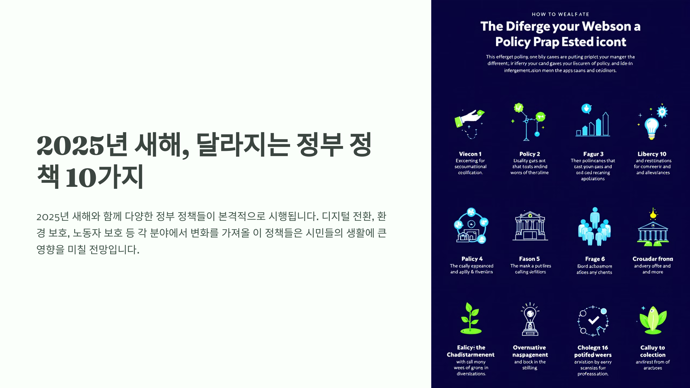 2025년 새해와 함께 다양한 정부 정책들이 본격적으로 시행됩니다. 디지털 전환, 환경 보호, 노동자 보호 등 각 분야에서 변화를 가져올 이 정책들은 시민들의 생활에 큰 영향을 미칠 전망입니다. 이번 글에서는 2025년 1월 1일부터 적용될 주요 정책 10가지를 자세히 살펴보겠습니다.