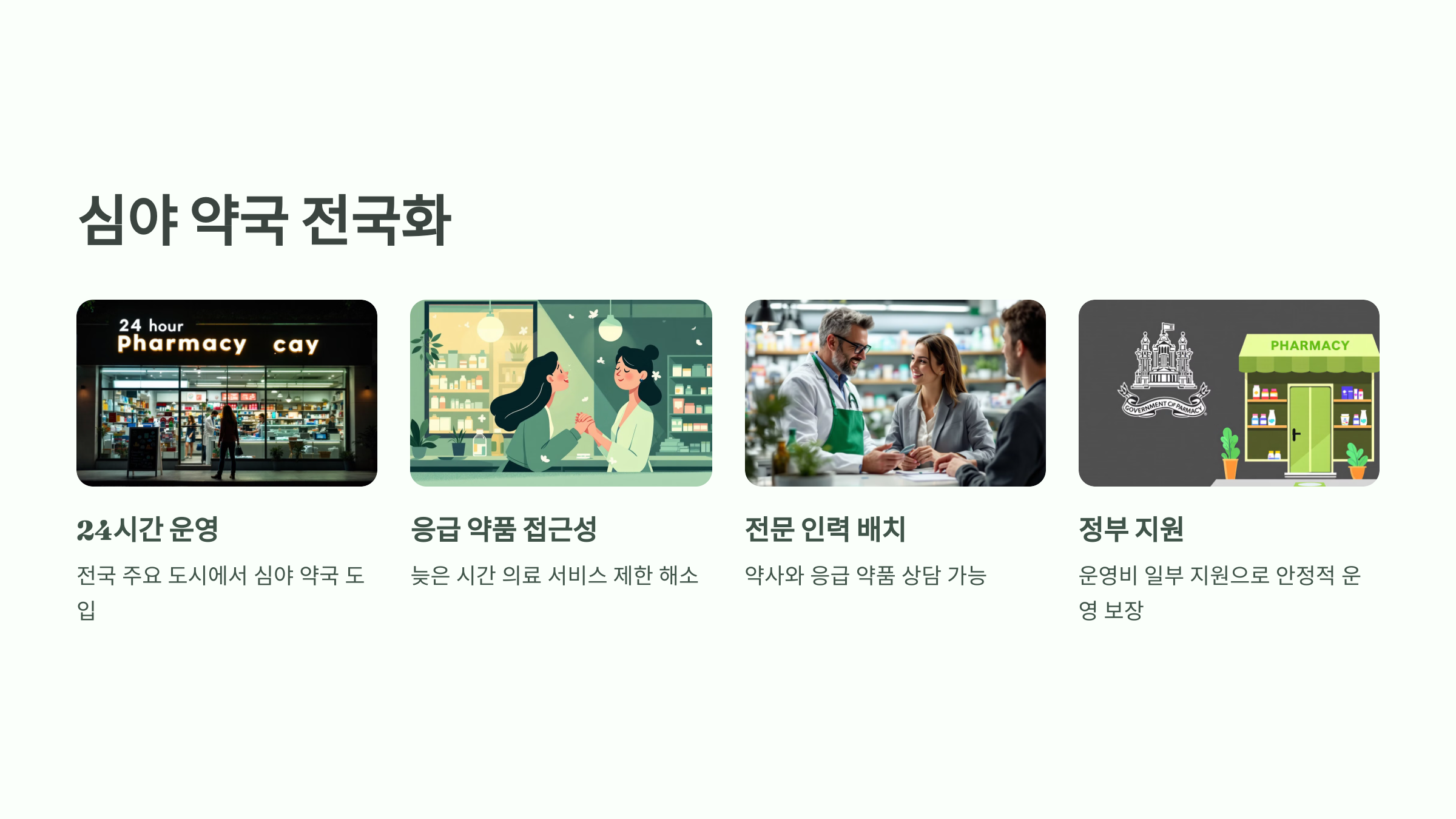 정부는 심야 약국 운영비 일부를 지원하여 안정적인 운영을 보장합니다.