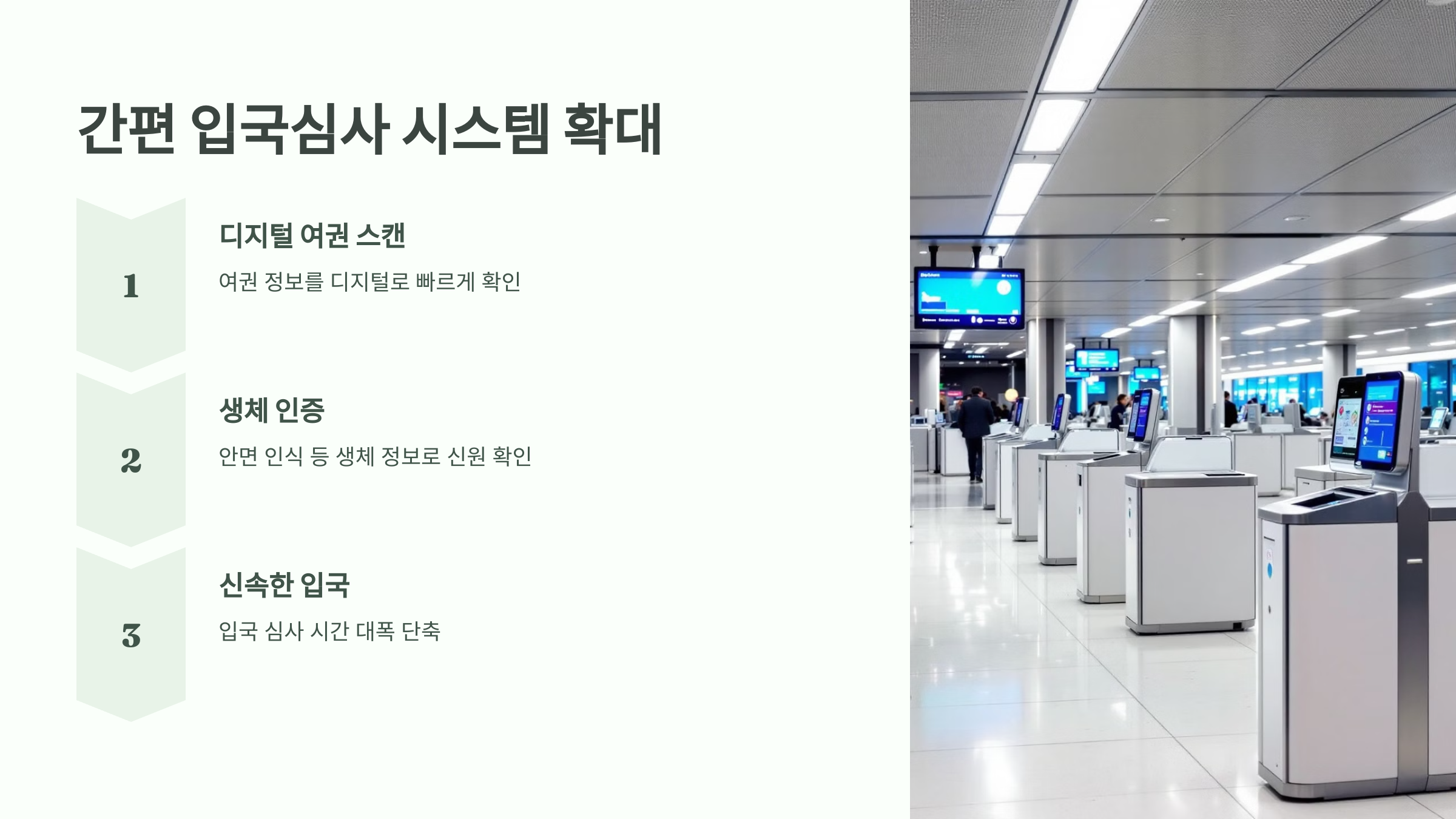 디지털 여권 스캔 및 생체 인증을 통해 입국 심사 시간을 대폭 단축할 계획입니다.